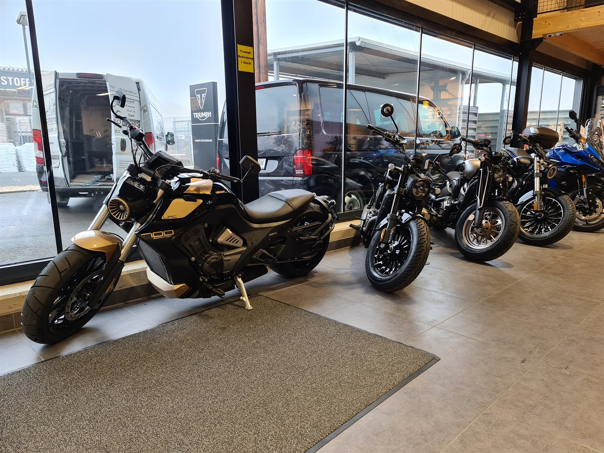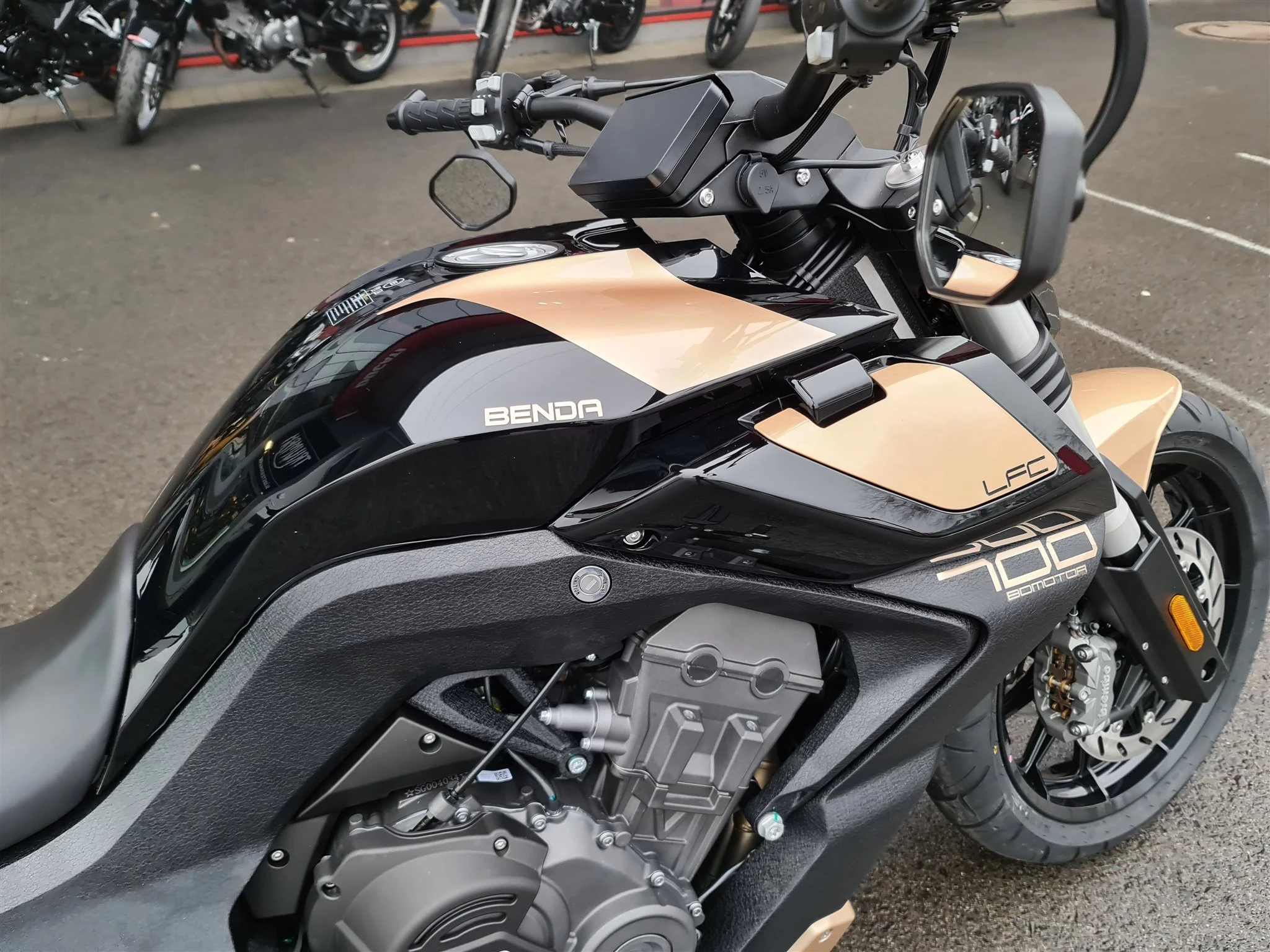 LFC 700i ABS mit 300er - Hinterrreifen, Aluminium Rahmen und Schwinge mit Zentralfederbein, Under-Engine-Auspuff mit vier quadratischen Endrohren, Wassergekühlter Reihen 4 Zylinder, 7" Full color TFT-Display, Sitzhöhe 790mm, Tankinhalt 17 Liter, Gewicht 287KG, Luftfahrwerk.