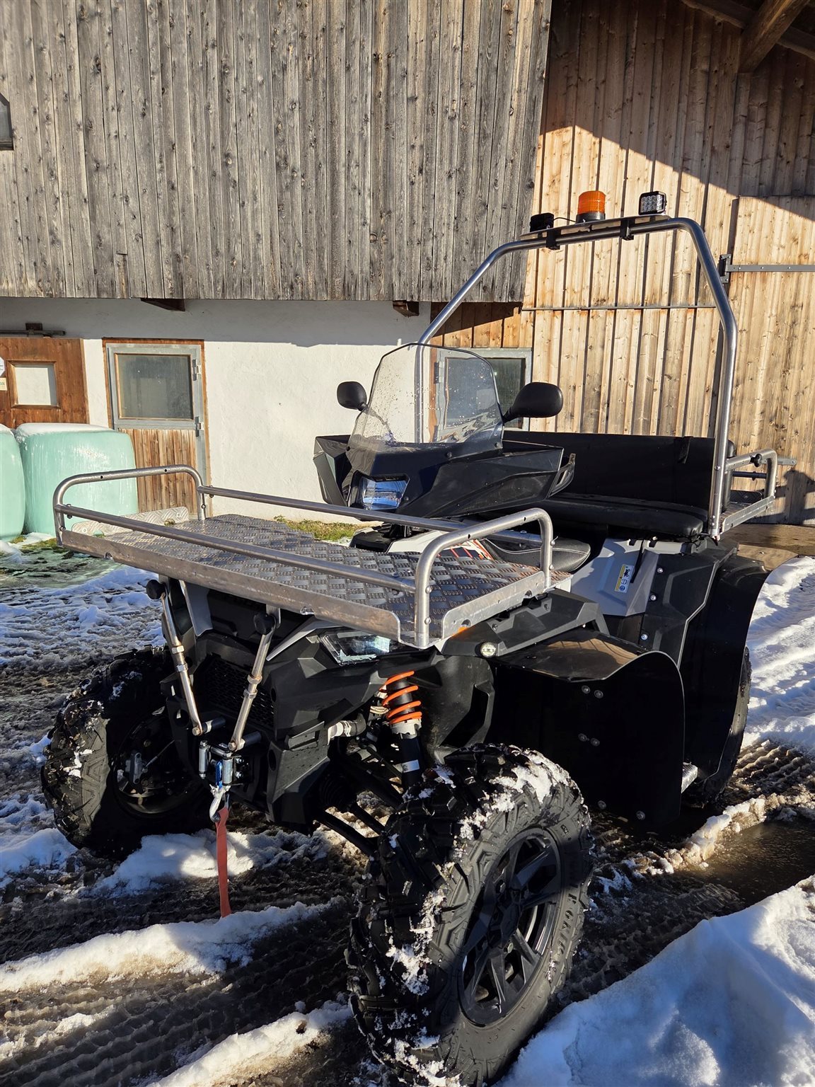 Verkaufen gut erhaltenes Quad, mit Rückbank, aufgebauten Arbeitsscheinwerfern, LED-Blinklicht, Anhängerkupplung, 7-polige Steckdose, Raupenfahrwerk, Frontwinde.