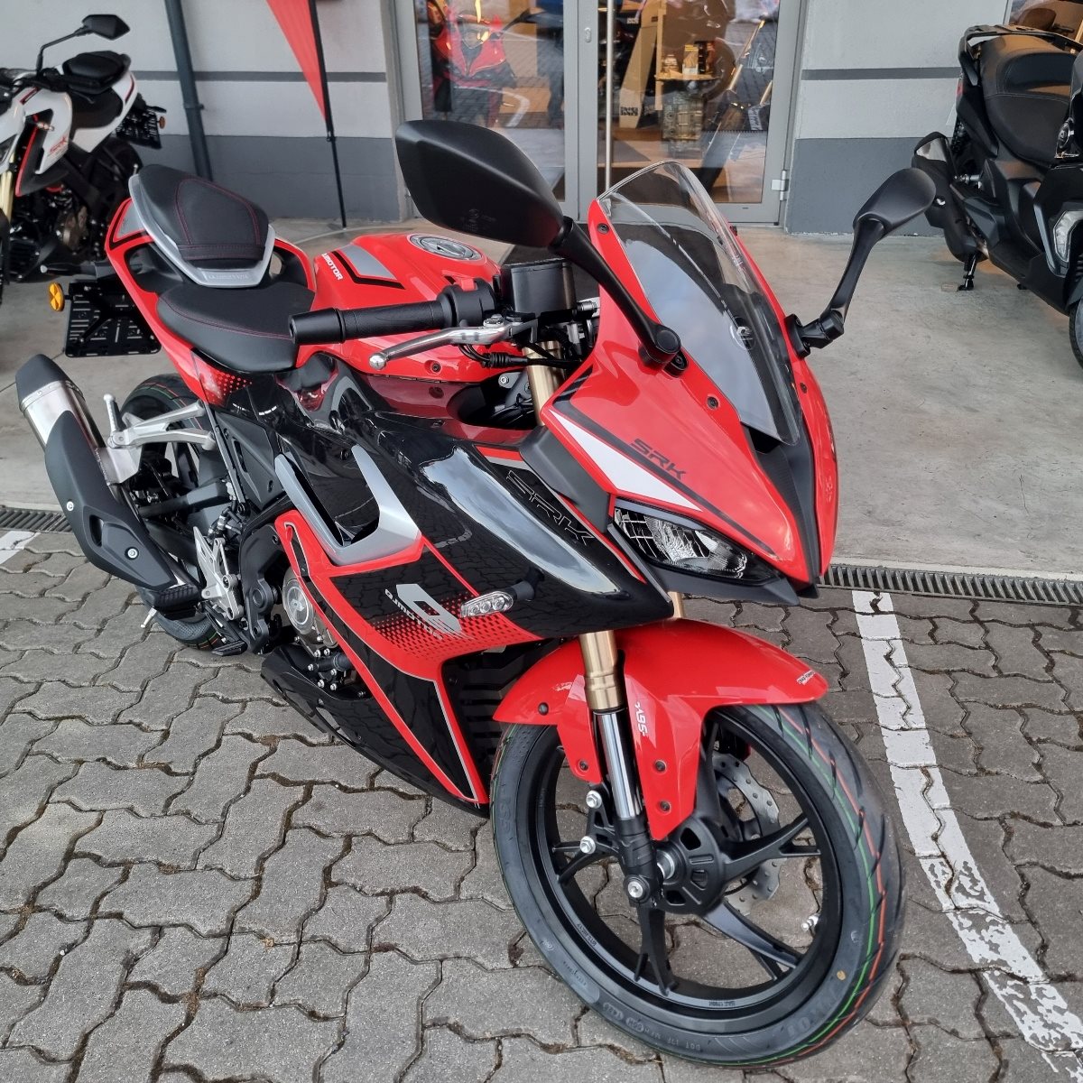 Mit 17-Zoll-Bereifung, 12,5-Liter-Tank und einem agilen Handling ist die SRK 125 R der perfekte Einstieg in die Welt der Racing-Bikes.