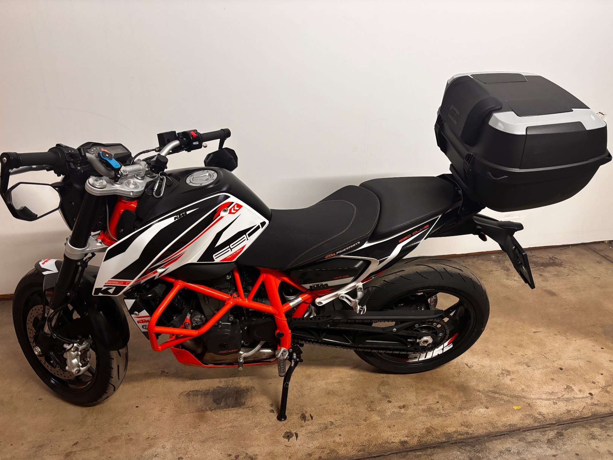 Ktm Powerparts Sitz, motorrschutzbügel , Alu bug-spoiler, Service Historie, mini Blinker vorne/ hinten,ABS,Nagel neu GIVI Koffer,USB Stecker am Lenkrad, ruckspiegel am Lenkrad Neu…