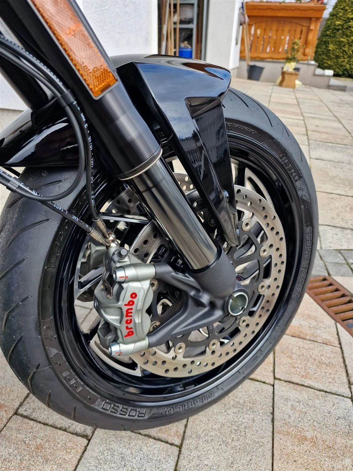 - bei hoher Schräglage deutlicher Druck am Lenker nötig