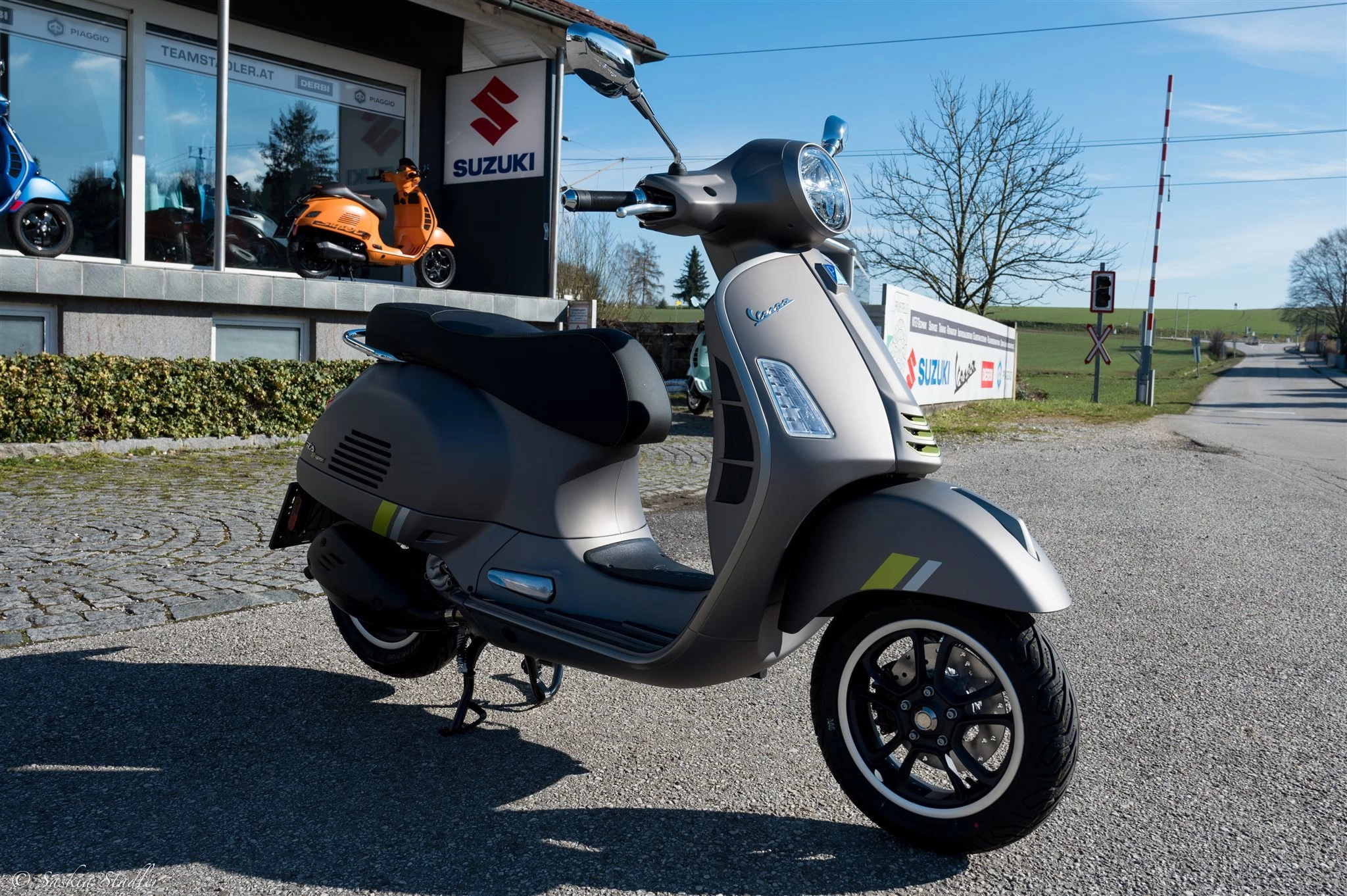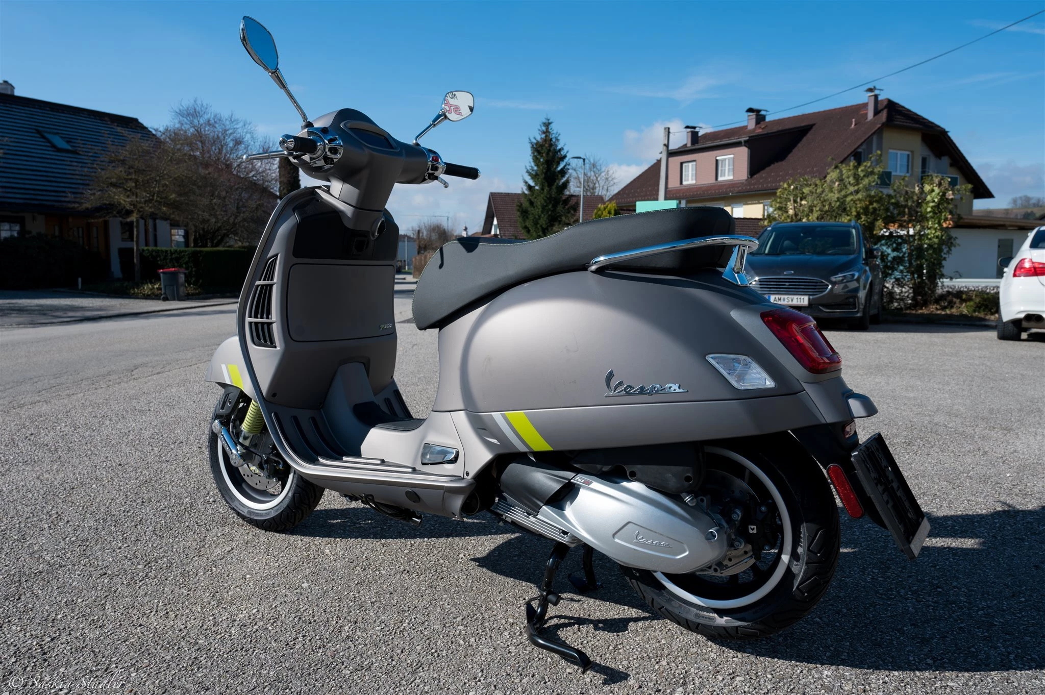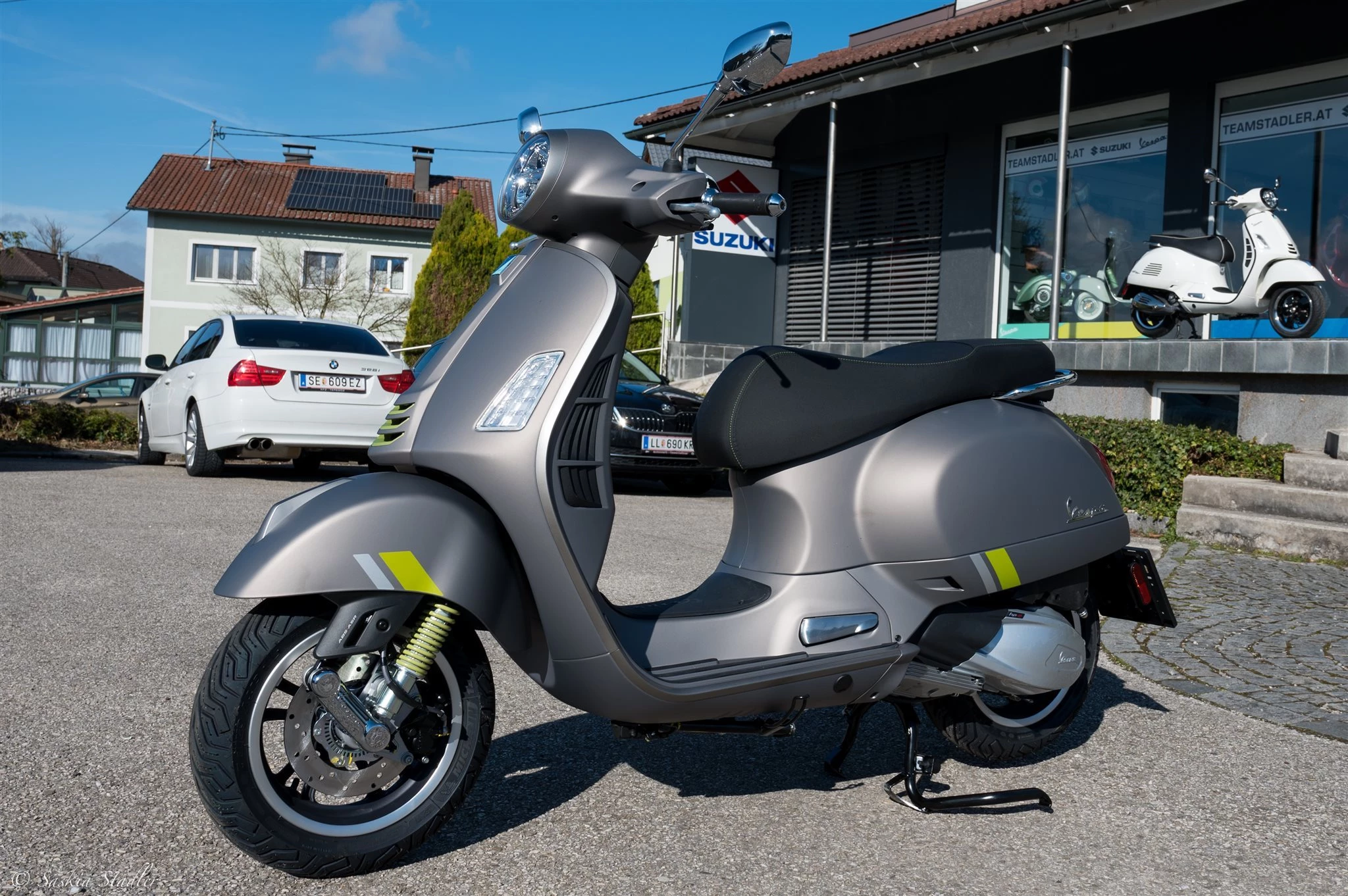 Die Vespa mit dem Hightech-Herz für alle, die immer einen Schritt voraus sein und ihre Abenteuer mit allen Annehmlichkeiten der neuesten Technologie genießen wollen. Das Top Modell Die Vespa Gts SuperTech verfügt über ein exklusives 4,3-Zoll-TFT-Farbdisplay, auf dem alle nützlichen Informationen für den Straßenverkehr klar und deutlich angezeigt werden. Über das Vespa MIA-System, das bei diesem Modell serienmäßig ist und durch den GPS*-Navigator ergänzt wird, kann das Smartphone mit dem Fahrzeug verbunden und Funktionen freigeschaltet werden, die das Fahren noch komfortabler machen. Ergänzt wird diese Technologie durch den 300 ccm HP-Motor, einen der leistungsstärksten, die je in eine Vespa eingebaut wurden. MIA Eco-Fahrt und Hilferuf Einmal mit dem Vespa MIA-System gekoppelt, bietet dieses Modell eine ganz neue Funktion: MIA Eco Ride. Beim Start des Navigationssystems kann der Fahrer einen bevorzugten CO2 Wert festlegen und eine ausgeklügelte Route für einen möglichst optimalen Verbrauch fahren. Dank MIA und dem Datenaustausch zwischen ABS und Neigungssensor, kann auch ein automatischer Notruf mit den Koordinaten des Unfallortes versandt werden. Ein Klassiker der Avantgarde Modernste Technologien treffen auf das zeitlose Design von Vespa mit ihren leuchtenden, strukturierten und gedeckten Farben, die elektrisierende Licht- und Kontrastspiele erzeugen. Die technischen Oberflächen in warmem Grau und fluoreszierendem Grün, der Sattel mit hochwertigen Materialien und kontrastierenden Nähten, das LED-beleuchtete Fach unter dem Sitz, sowie die Formensprache und die Liebe zum Detail, machen diese Vespa unnachahmlich und exklusiv. *Die Navigationsfunktion ist ab der ersten Nutzung drei Jahre lang kostenlos. Die Erneuerung ist fakultativ.