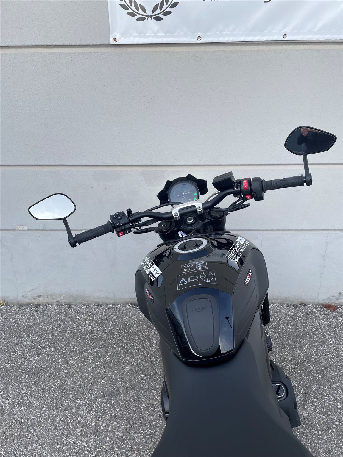 ab sofort im Schauraum die neue Trident 800, serienmäßig mit 3 Fahrmodi, Kurven ABS, Kurven Traktionskontrolle, Quickshifter, Tempomat und "My Triumph Connectivity" System