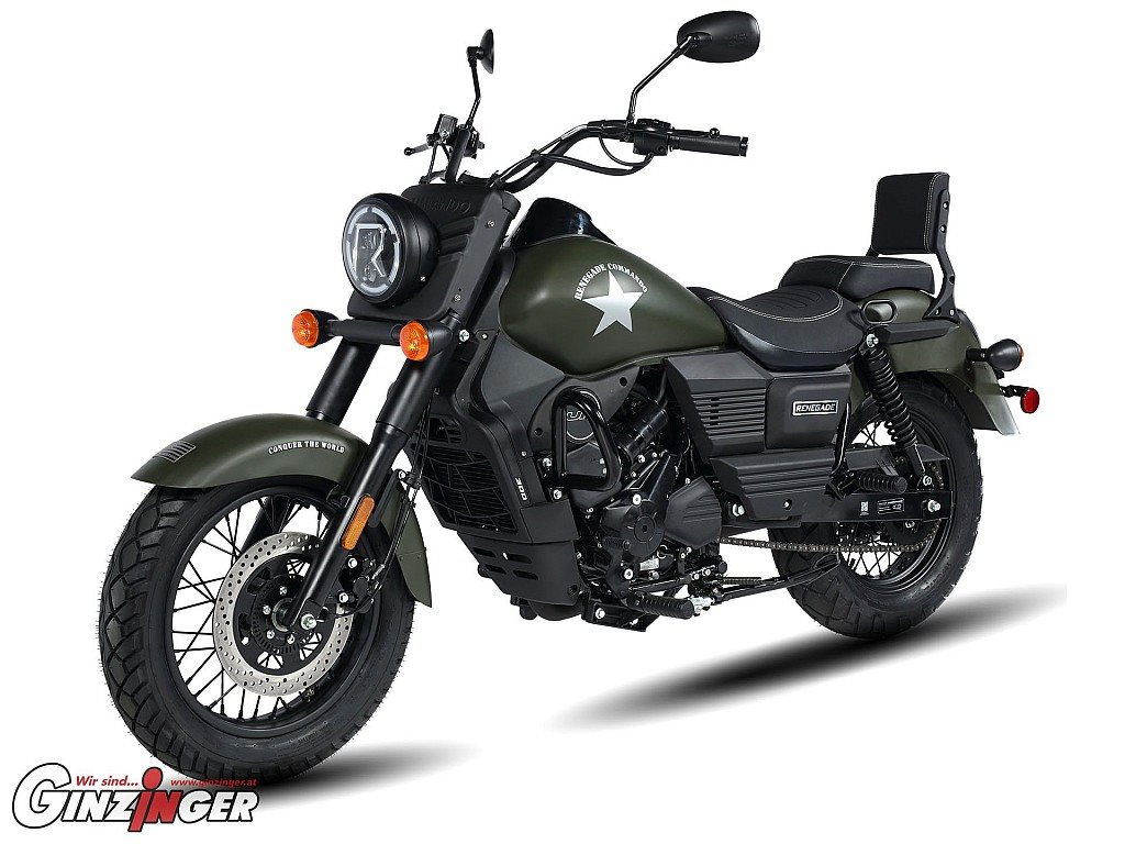 Leichter lässiger Cruiser mit ansprechender Optik und Details. Der niedrige und flache Sitz passt zu allen Fahrern, sehr komfortabel für Beifahrer dank Rückenlehne.