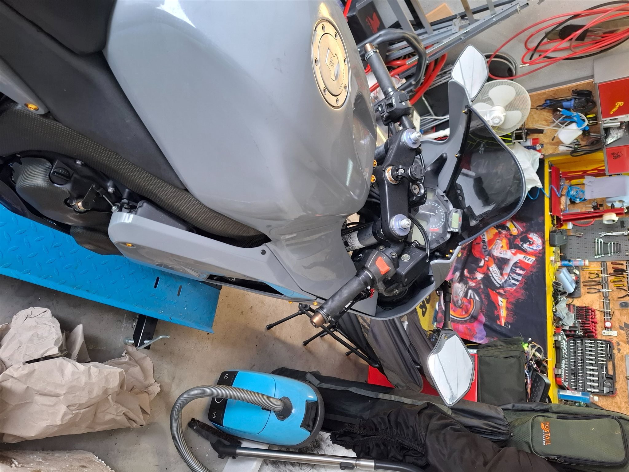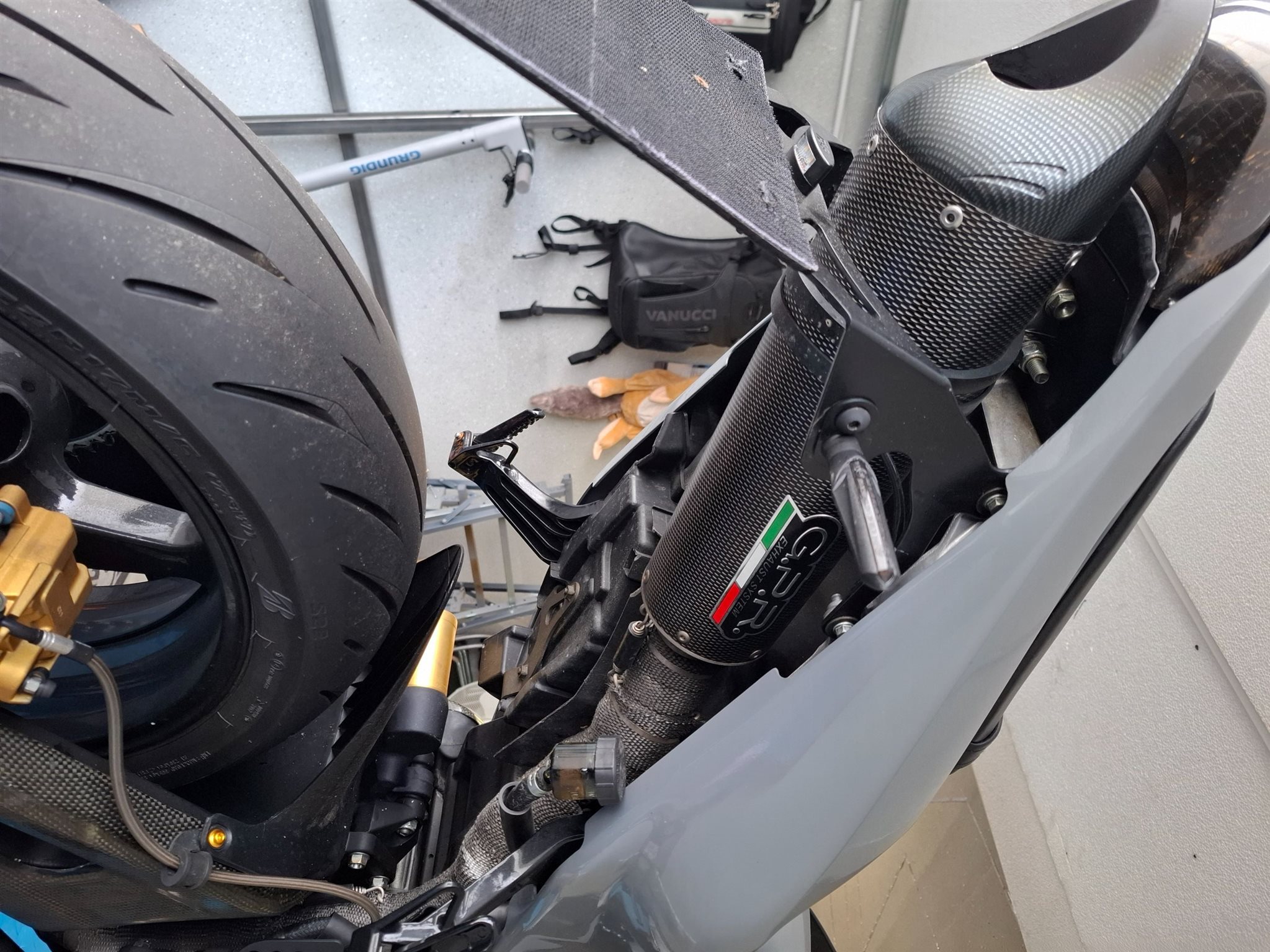 Reifen wie neu. Vorne und hinten bremsbeläge neu. Ventilspiel vor 2 Jahren bei 52000km kontrolliert. Es wurde auch Lenkkopflager und Gabelservice gemacht. Jedes Jahr Ölwechsel gemacht. GPR Auspuff montiert. Kurze Brems und Kupplungshebel., Reifen Bridgestone S 22, Original Auspuff dabei.