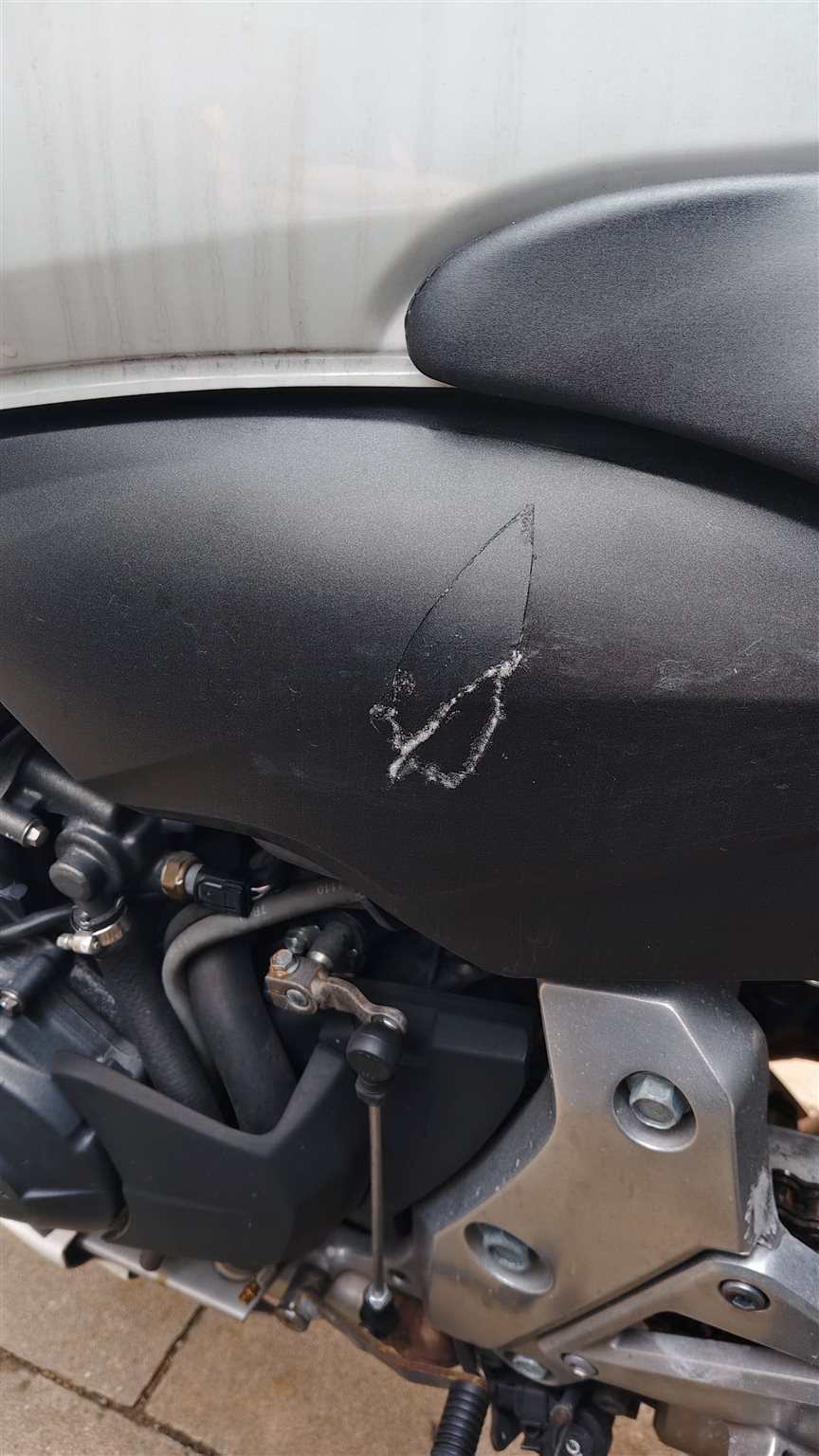 Ein kleiner Umfaller hat nur eine Plastikabdeckung unter dem Sitz betroffen (Foto) wurde sauber geklebt, keinerlei Einfluss auf Fahrverhalten oder Technik.