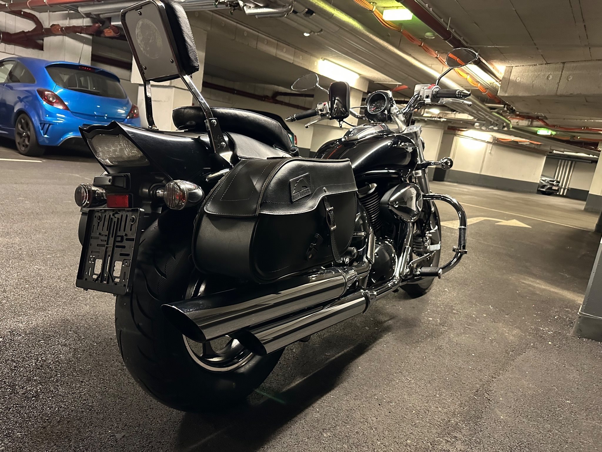 Alle Flüssigkeiten, Zündkerzen und Filter wurden vor 3.000 Kilometern ausgetauscht. Neuer Hinterreifen und neue Batterie. Das Motorrad steht immer in einer warmen Garage. Zusammen mit dem Motorrad gebe ich seitliche Ledertaschen, einen Rucksack für den Sissybar und eine Abdeckung dazu.