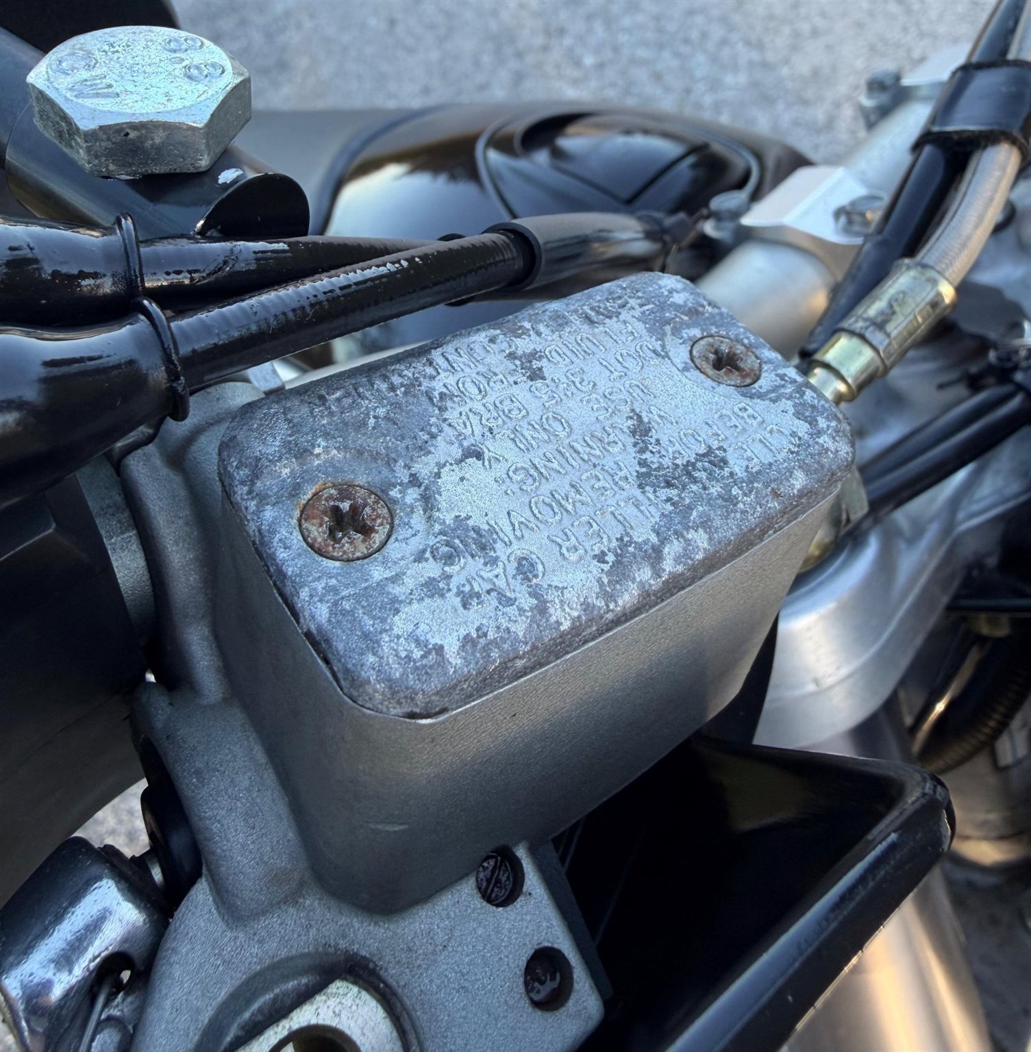 Zustand für das Alter SEHR GUT mit minimalen Gebauchsspuren - einzig das Tachoglas ist zerkratzt, das Scheinwerferglas "löst" sich langsam auf und der Deckel vom Bremsflüssigkeitsbehälter der Vorderradbremse ist oxidiert.