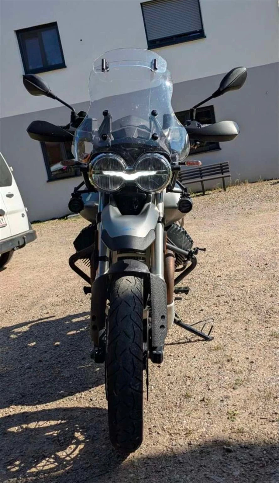 Nachgerüstet habe ich originale Nebelscheinwerfer, Akrapovic Endtopf, höhere Sitzbank, gebrauchte original-Seitenkoffer, großes Windschild.