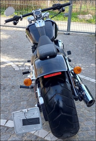 • Der breiteste Hinterreifen der serienmäßigen Harleys kommt gut zur Geltung