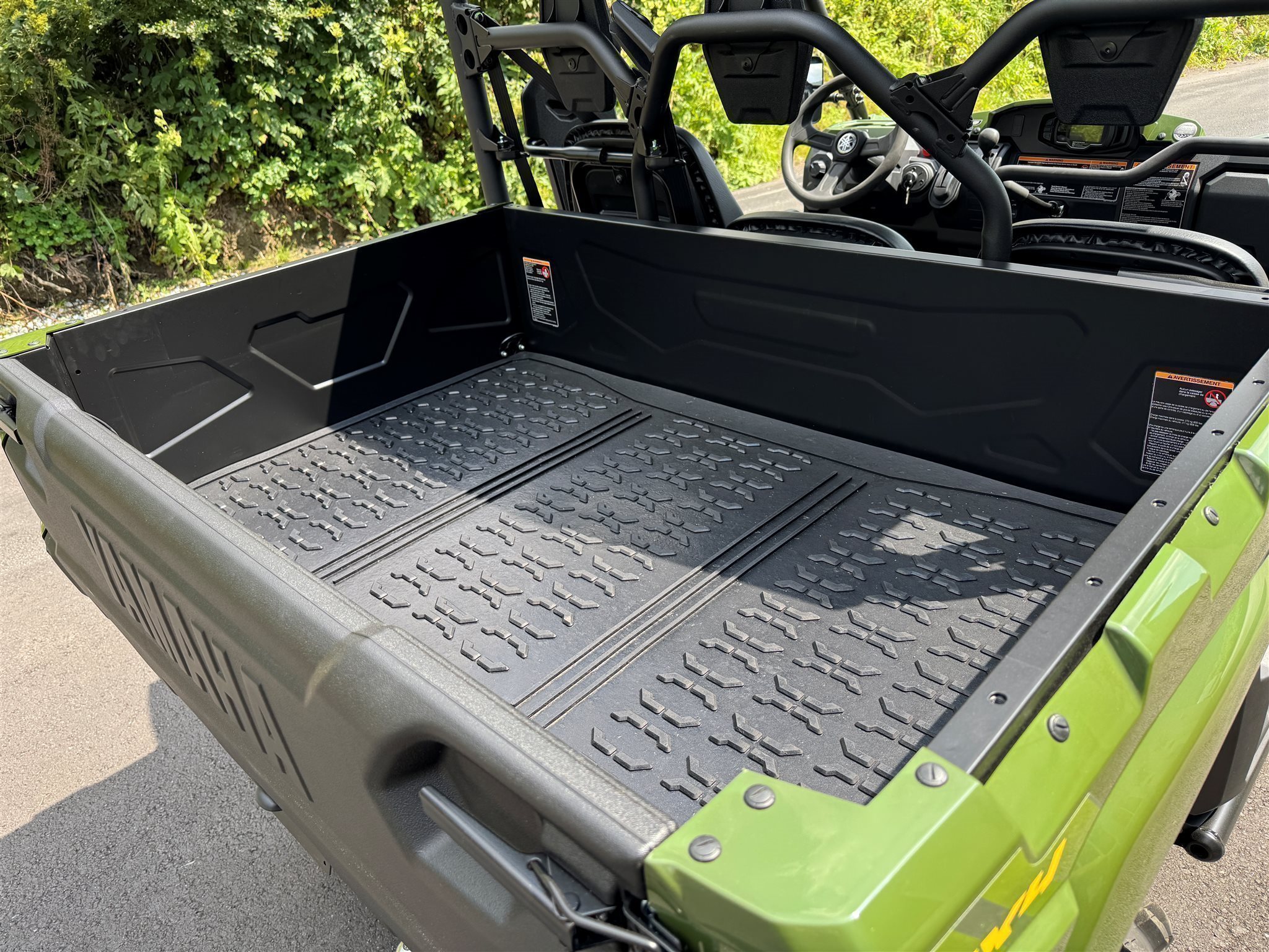Das geräumige Layout mit drei Sitzplätzen und der flache, durchgängige Fußraum garantieren eine allzeit komfortable und sichere Fahrt für Sie und Ihre Kollegen. Während die Doppelquerlenker-Radaufhängung jedes noch so schwere Gelände meistert, nimmt die kippbare Ladefläche im Europaletten-Format Lasten von bis zu 272 kg auf.