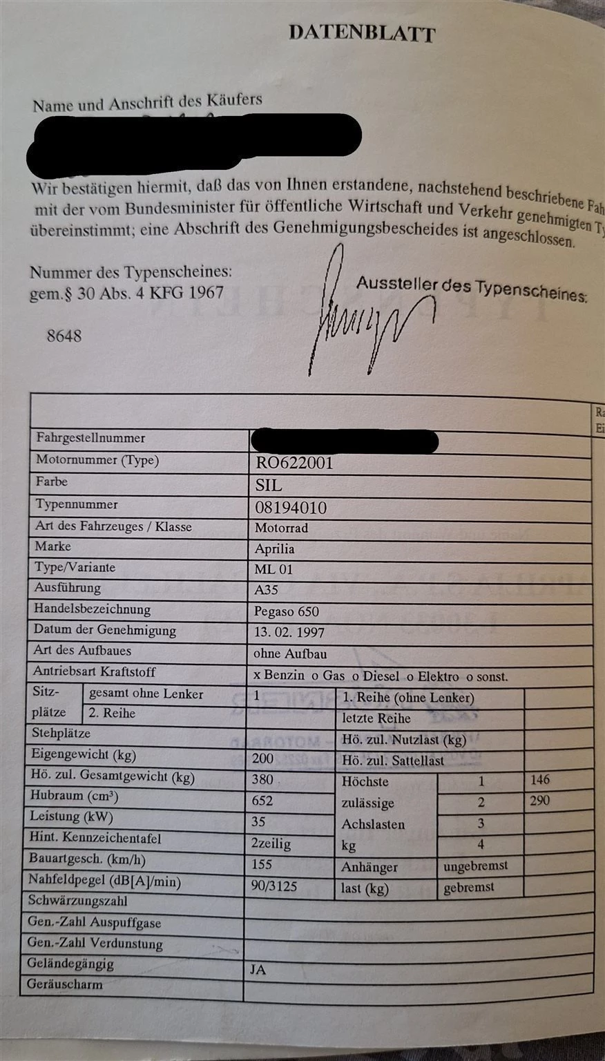 Verkaufe meine Aprilia Pegaso 650 Garda ML01