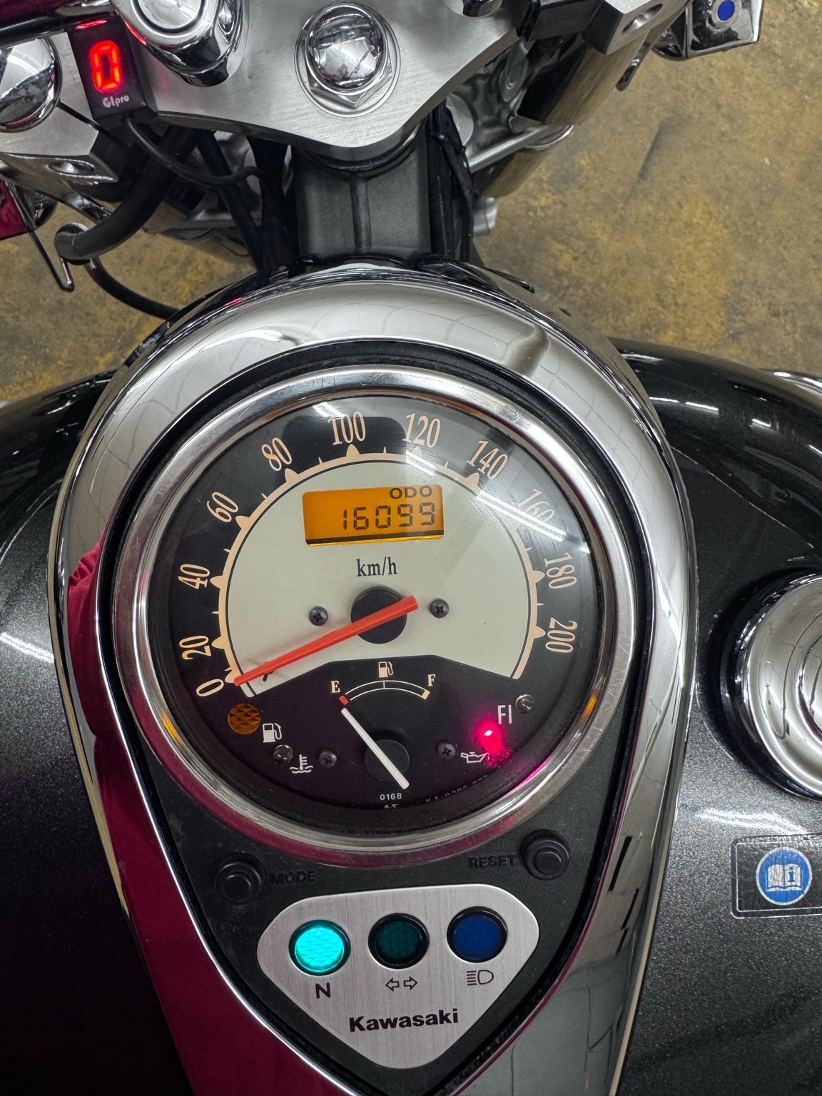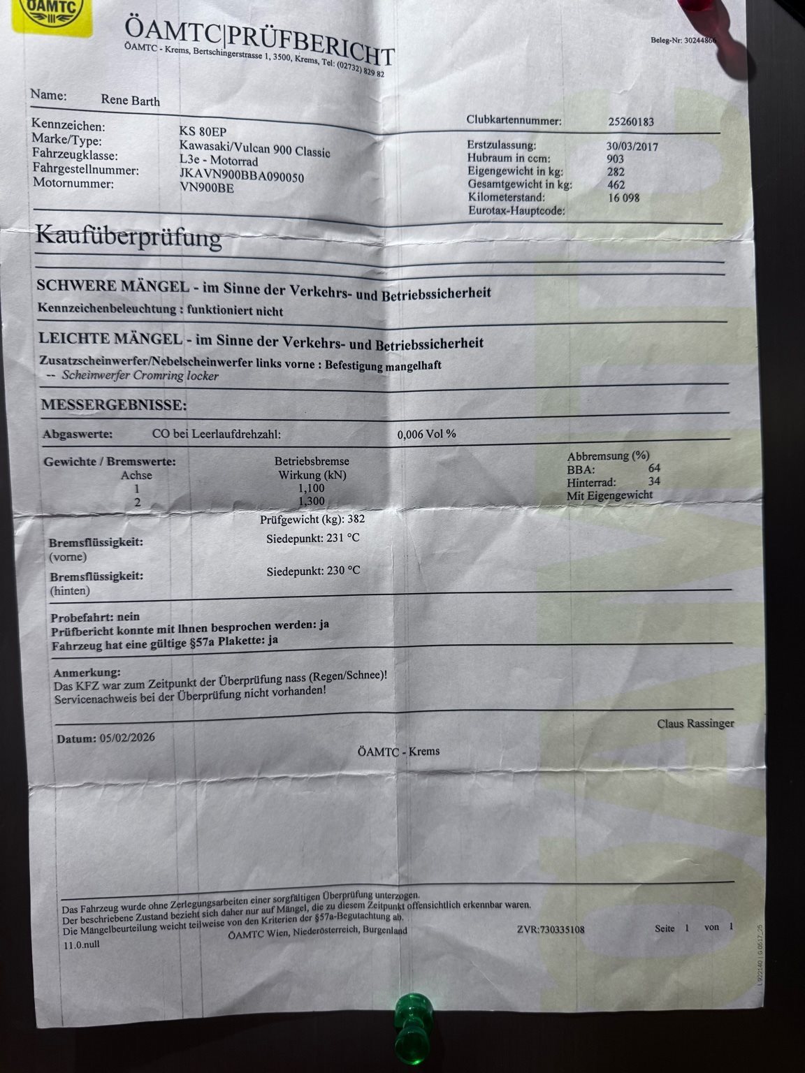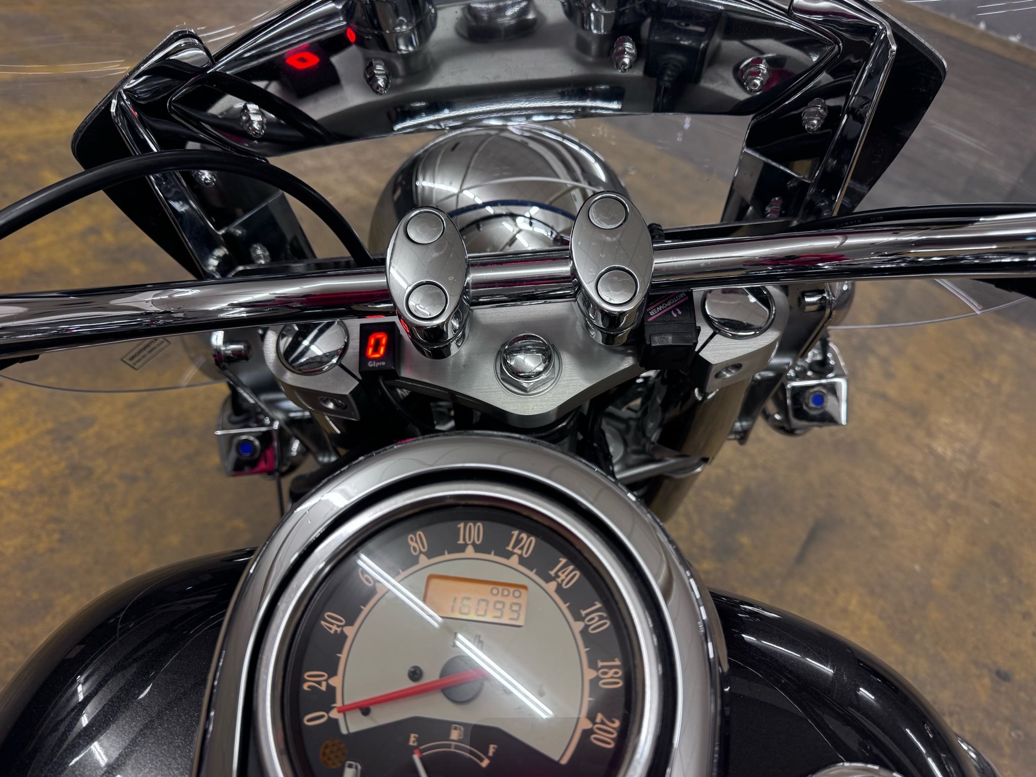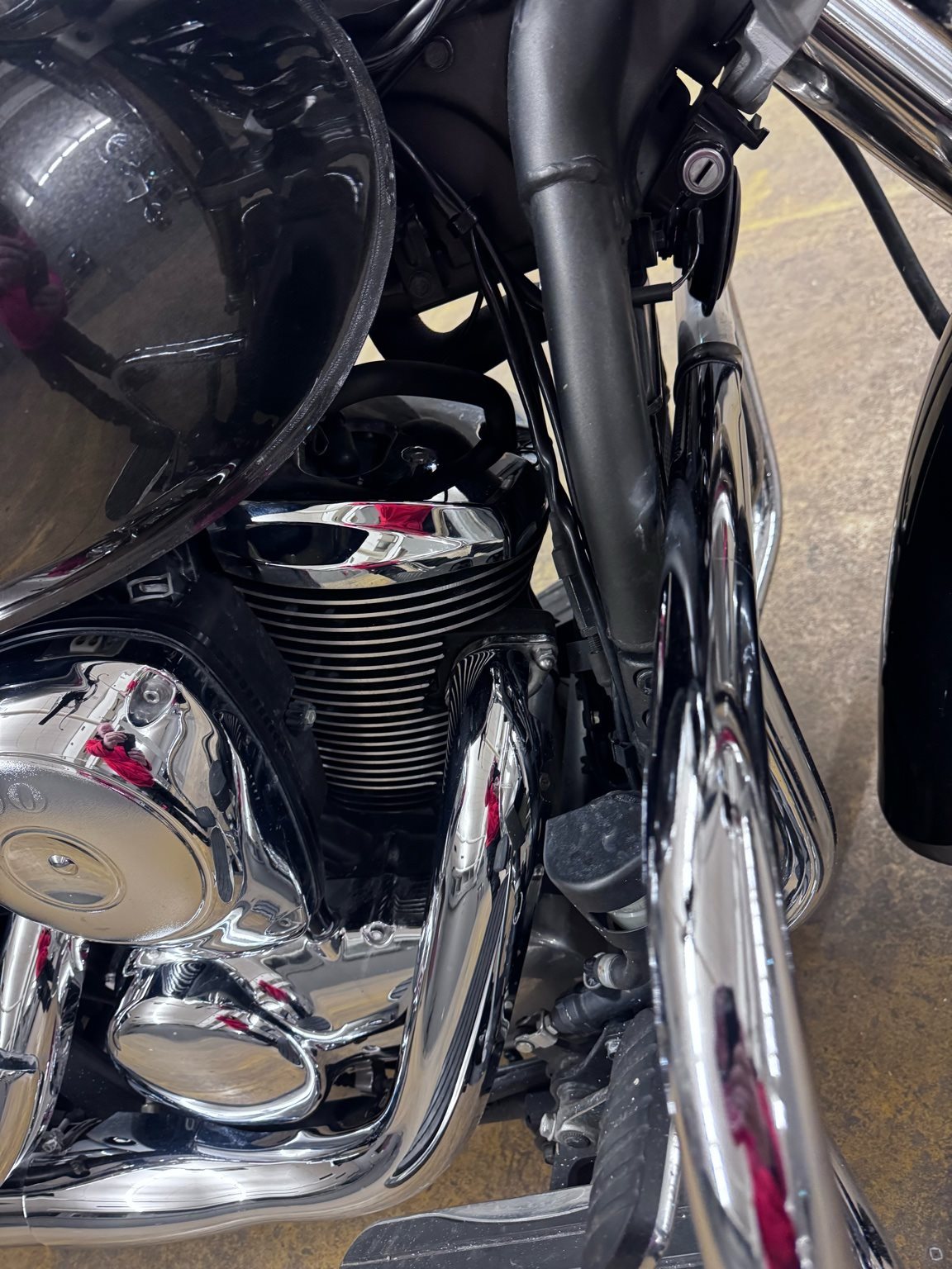 An der rechten Luftfilterabdeckung löst sich ein wenig die Verchromung vom Kunststoff, am Vorderen Kotschützer gibt es einen kleinen Kratzer, am Scheinwerfer gibt es an der Oberseite eine keine Kerbe.