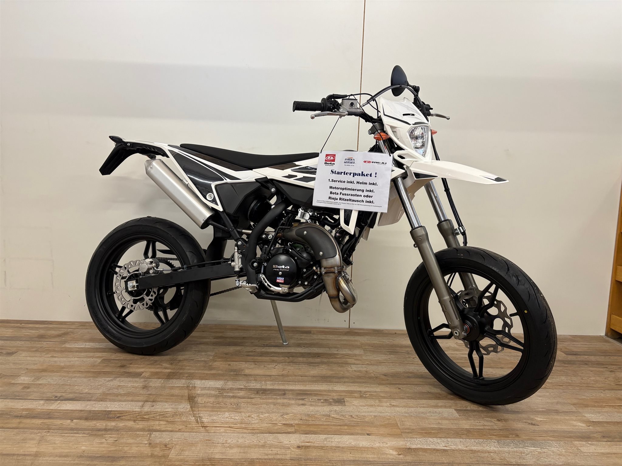 Die Beta Motard 50 in der Farbe Weiß steht für einen klaren, sportlichen Auftritt und zuverlässige Technik im 50-ccm-Segment.