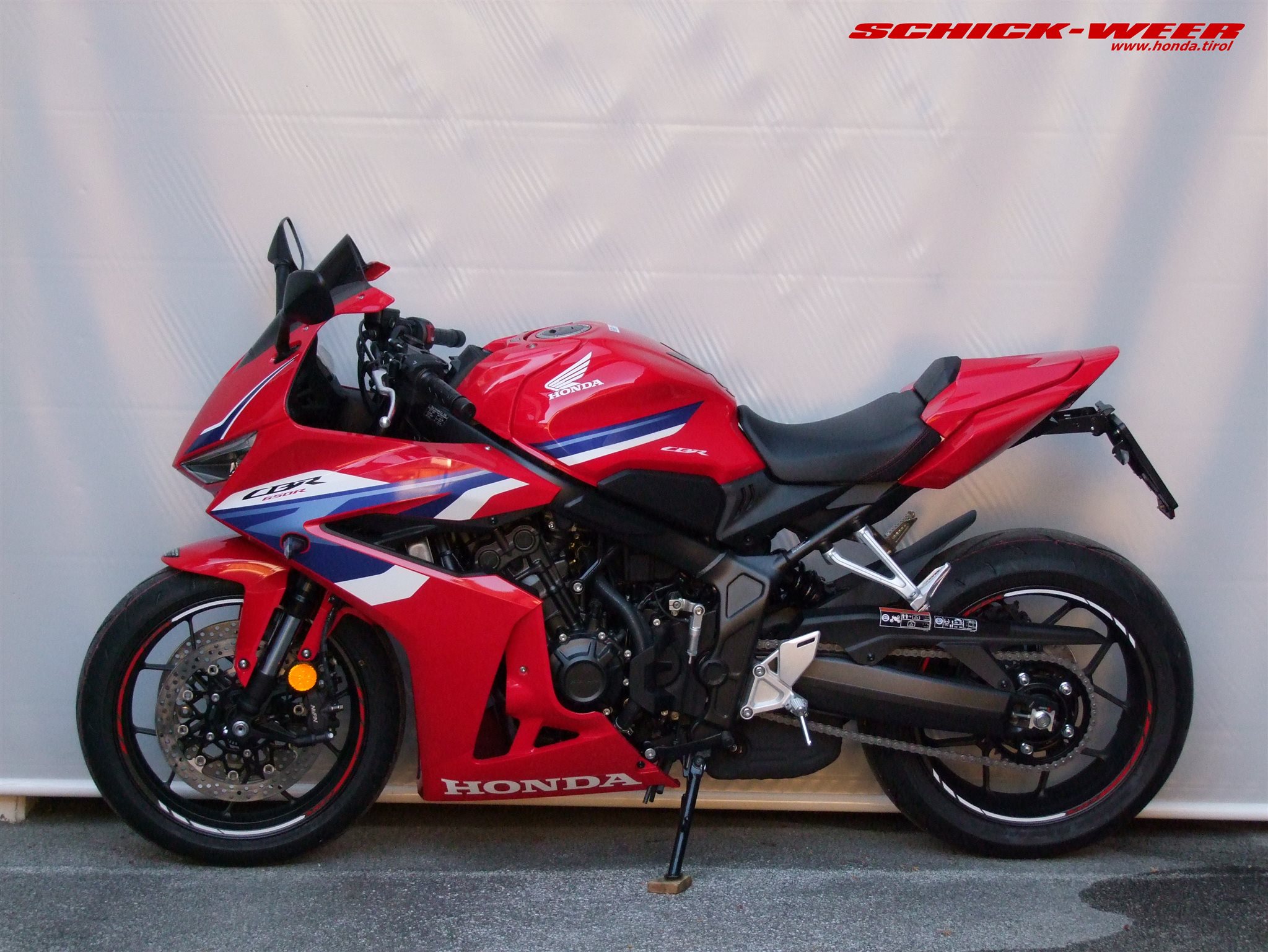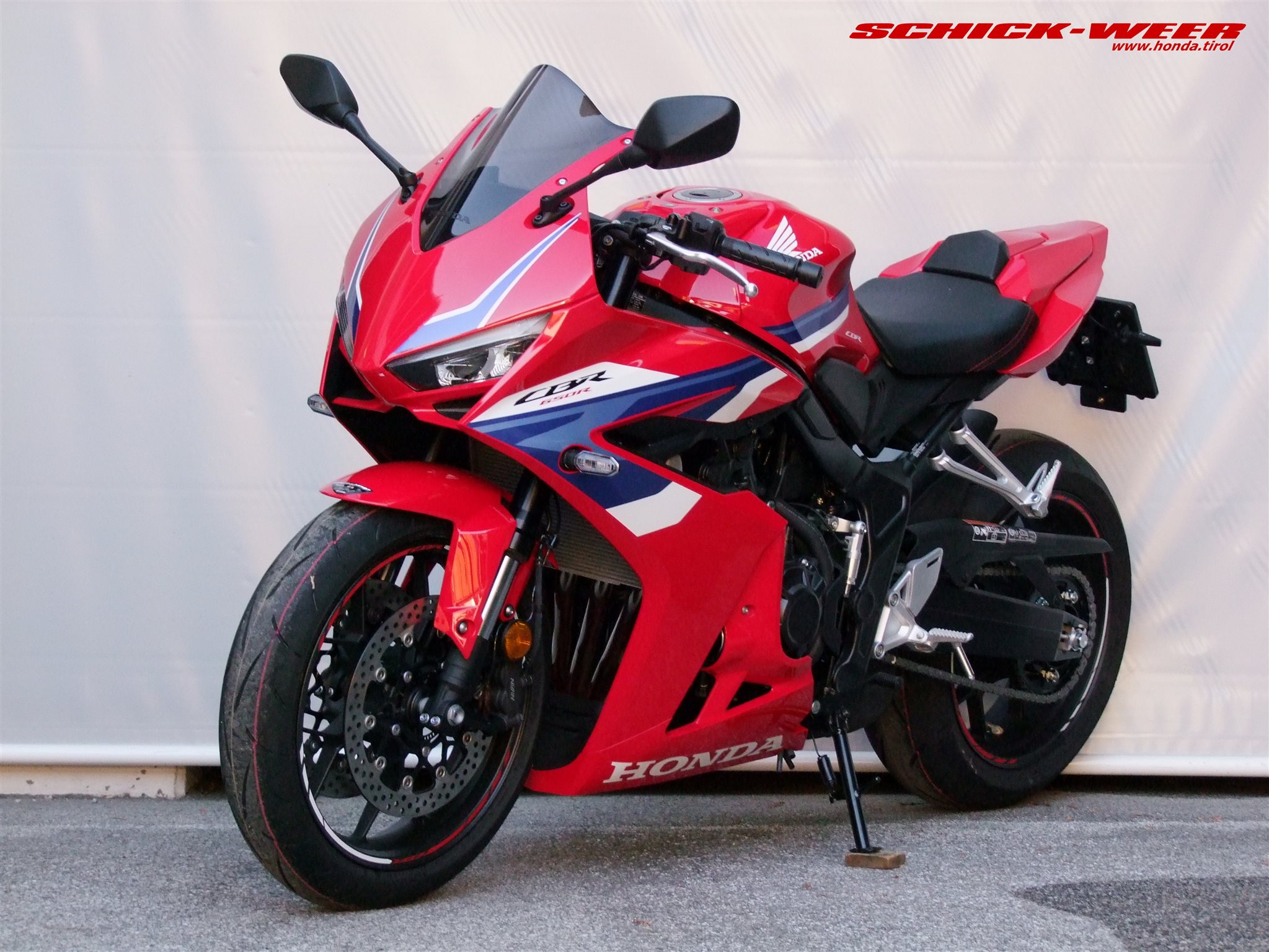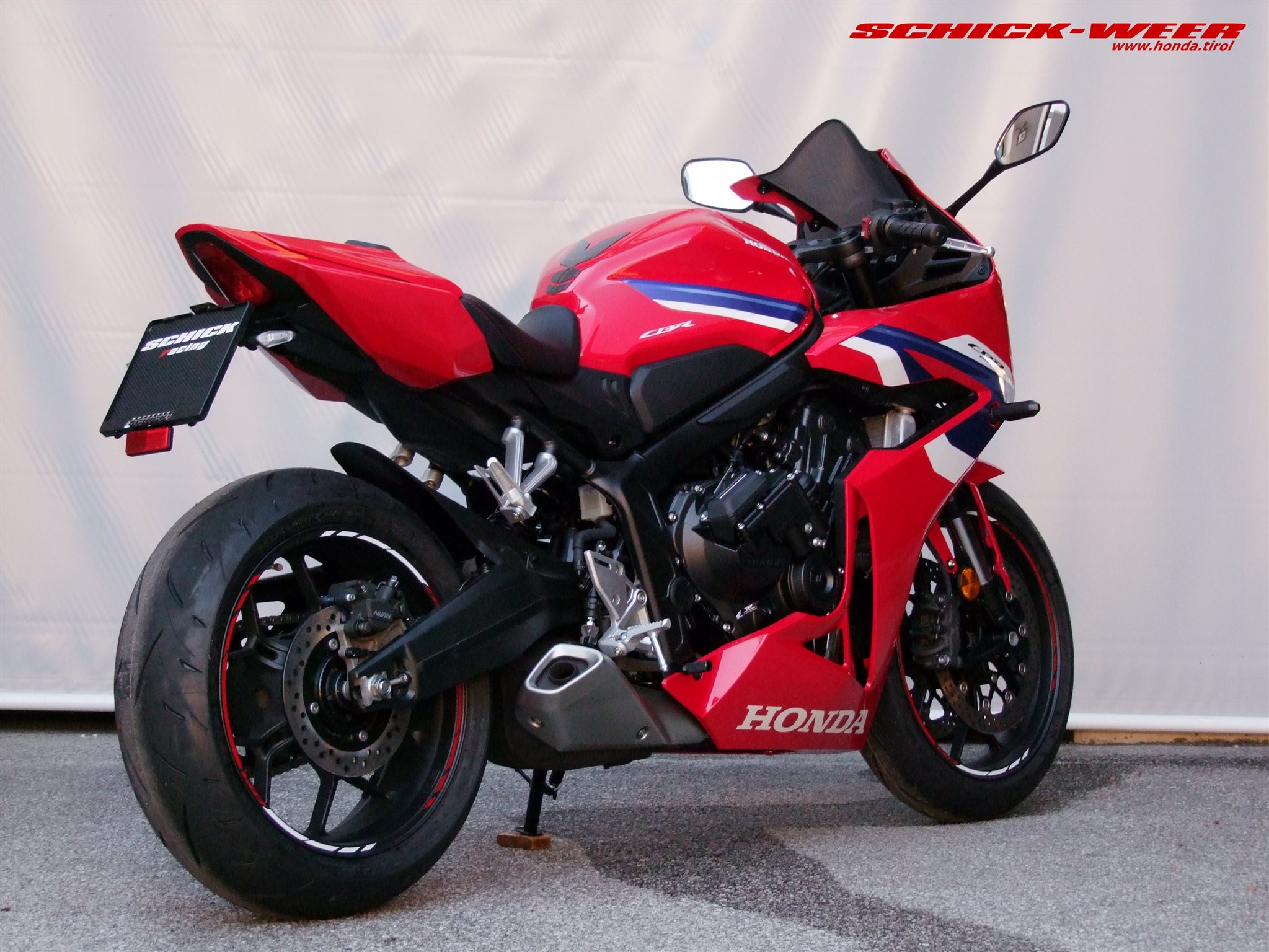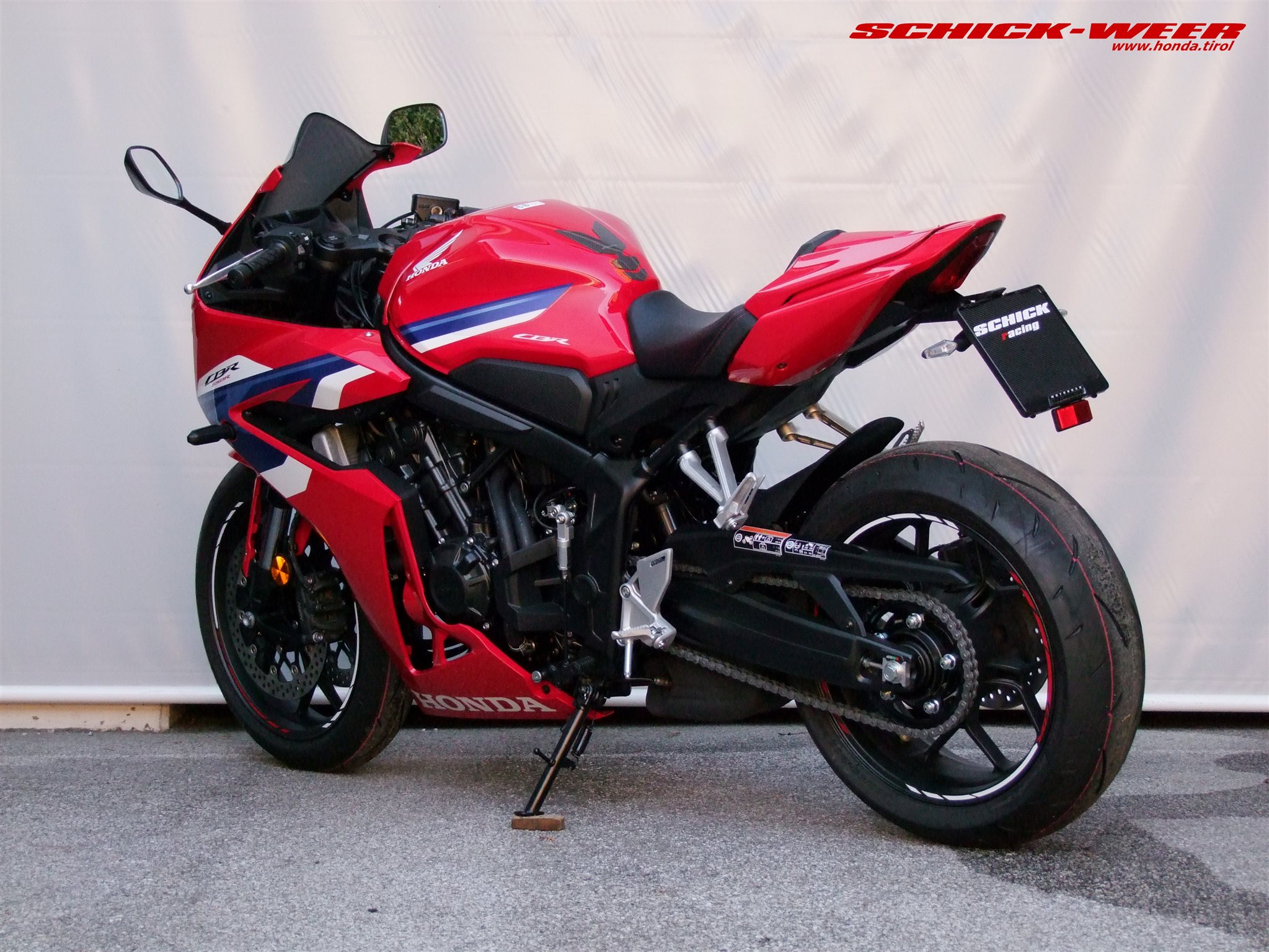 Sondermodell 30 Jahre Firma Schick. Honda CBR650R E-Clutch in rot: Neufahrzeug mit 0km inkl. Felgenstreifen, Tankpad oben und seitlich, getöntes Racing Windschild, kurzes Heck inkl. Rizoma Blinker, und Soziussitzabdeckung zum unschlagbaren Aktionspreis von € 11.990,-- ! (Wert des am Fahrzeug verbauten Zubehörs € 700,-- ohne Montage !)