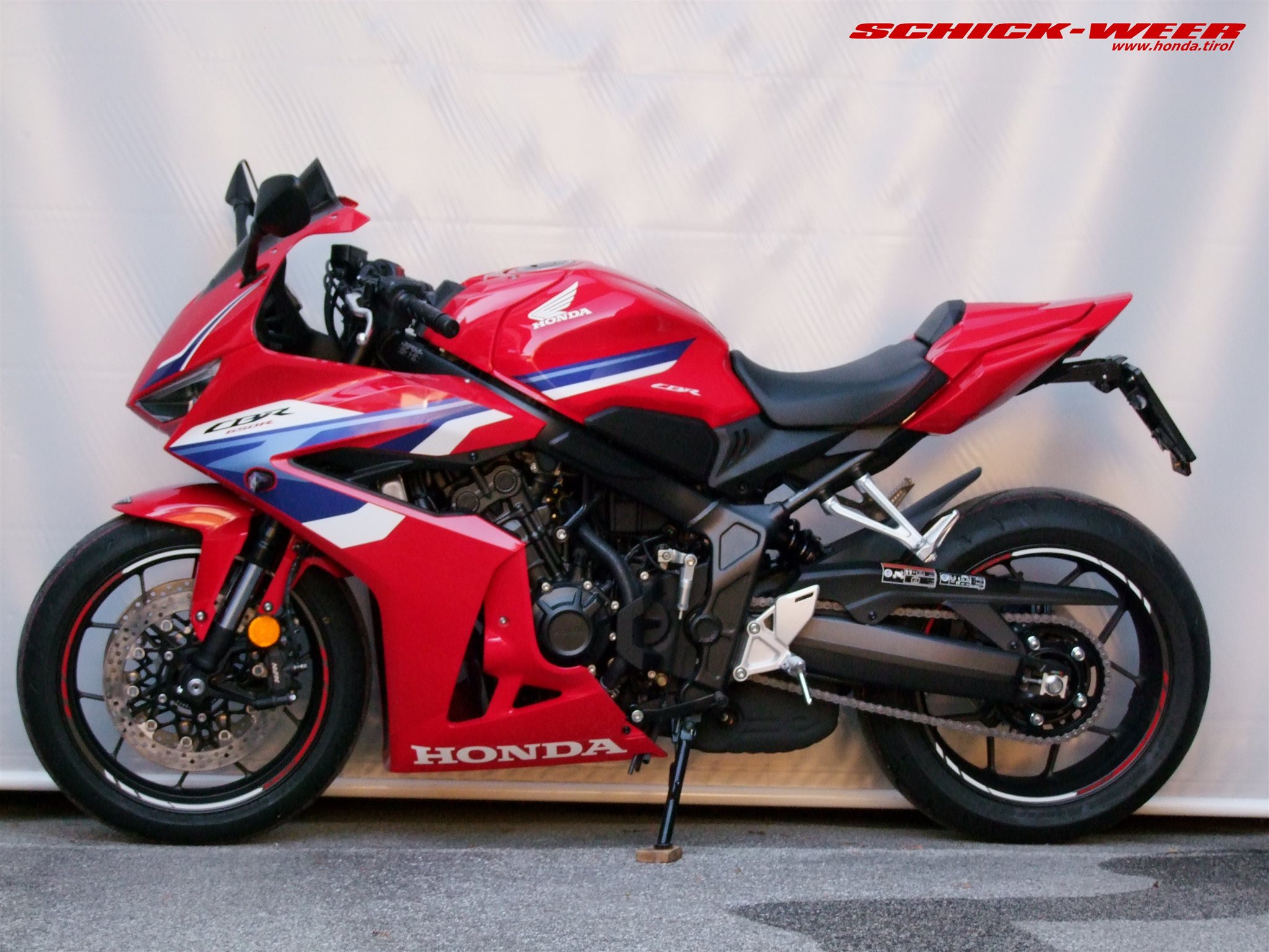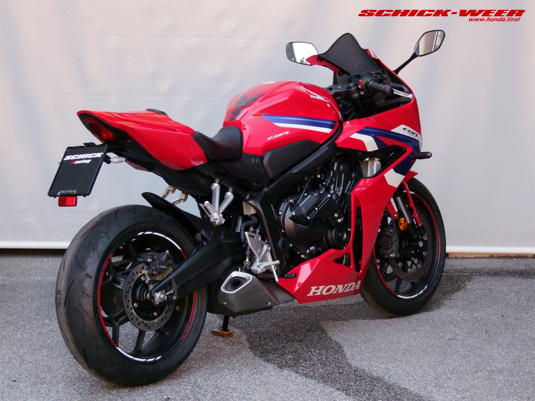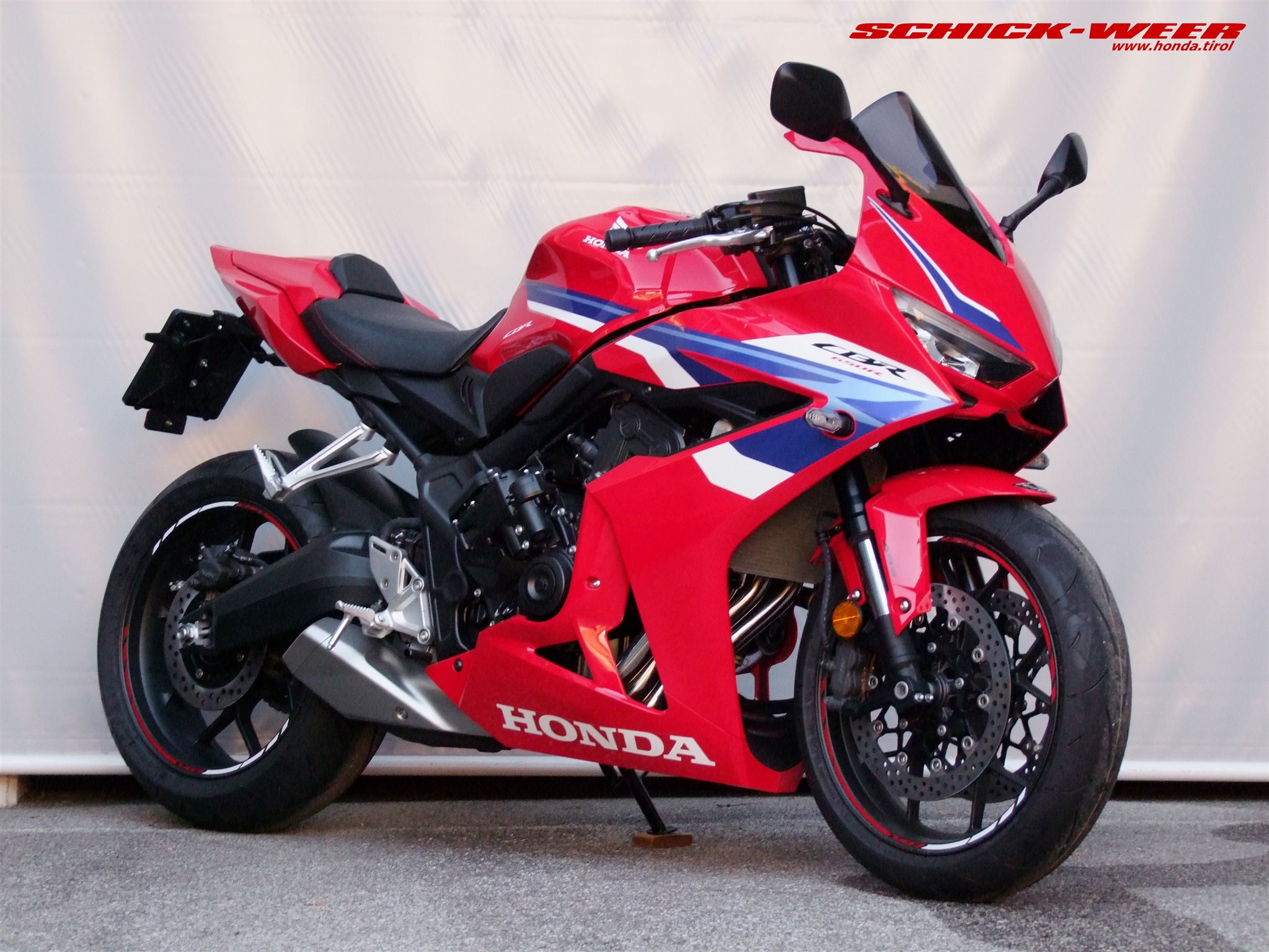 Sondermodell 30 Jahre Firma Schick. Honda CBR650R E-Clutch in rot: Neufahrzeug mit 0km inkl. Felgenstreifen, Tankpad oben und seitlich, getöntes Racing Windschild, kurzes Heck inkl. Rizoma Blinker, und Soziussitzabdeckung zum unschlagbaren Aktionspreis von € 11.990,-- ! (Wert des am Fahrzeug verbauten Zubehörs € 700,-- ohne Montage !)