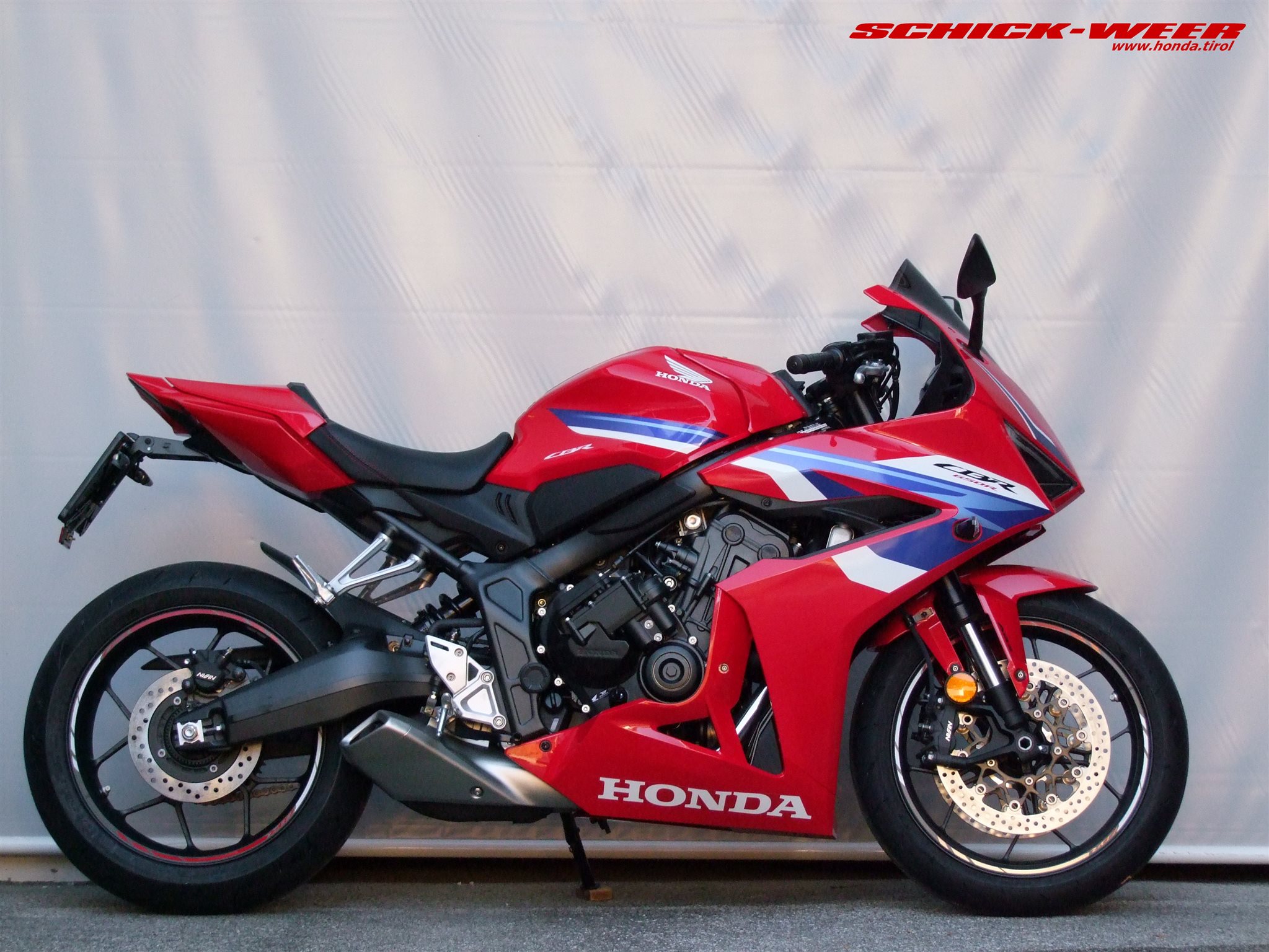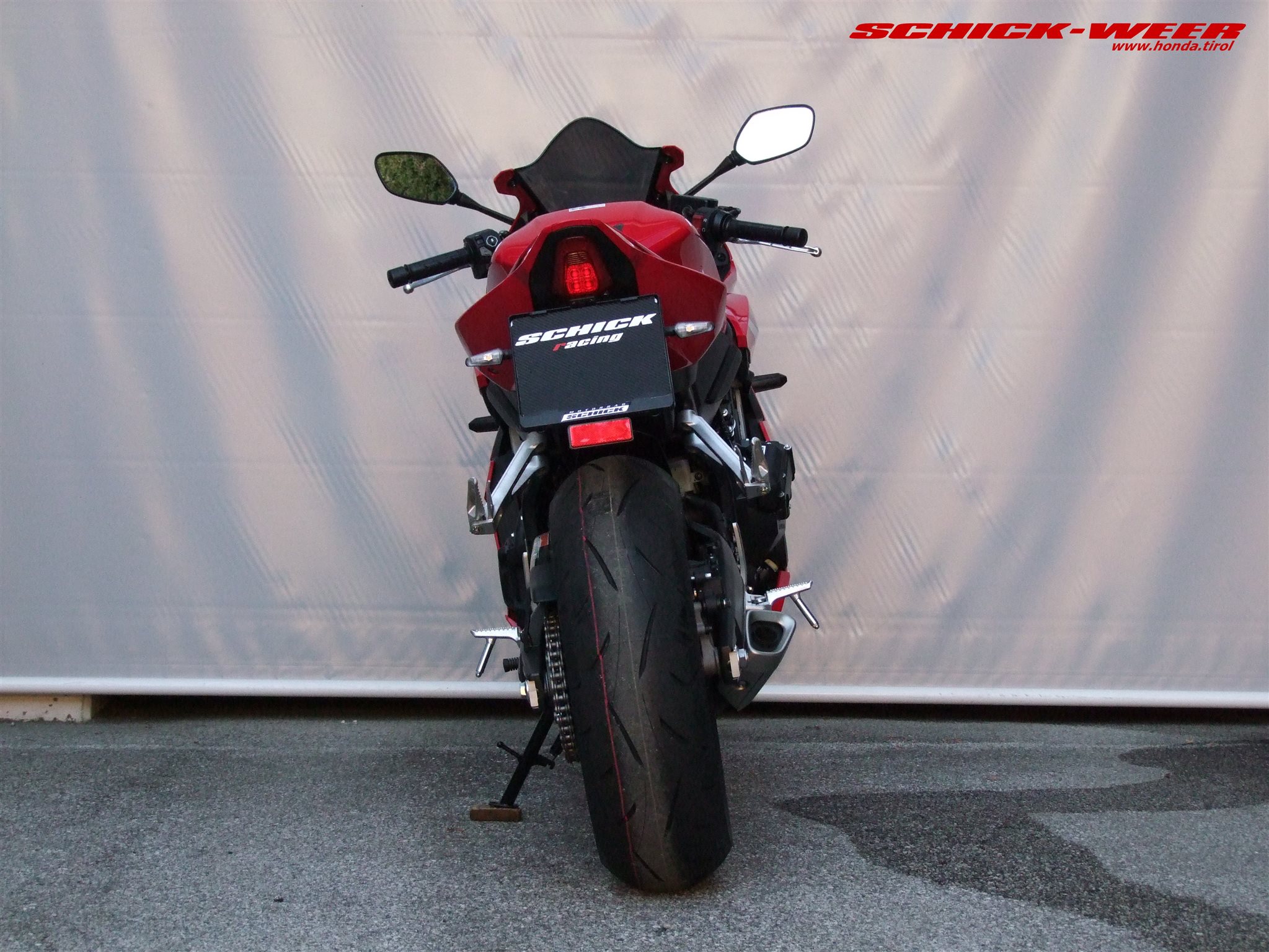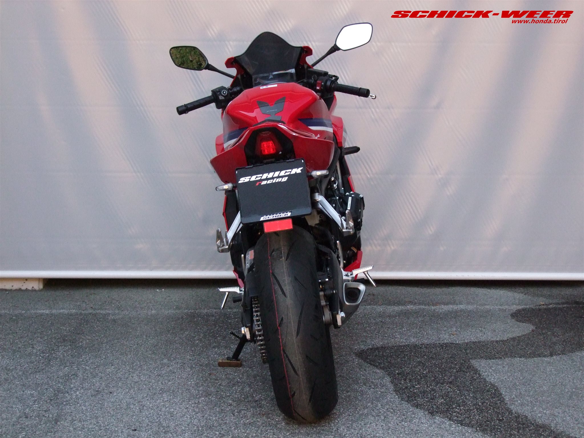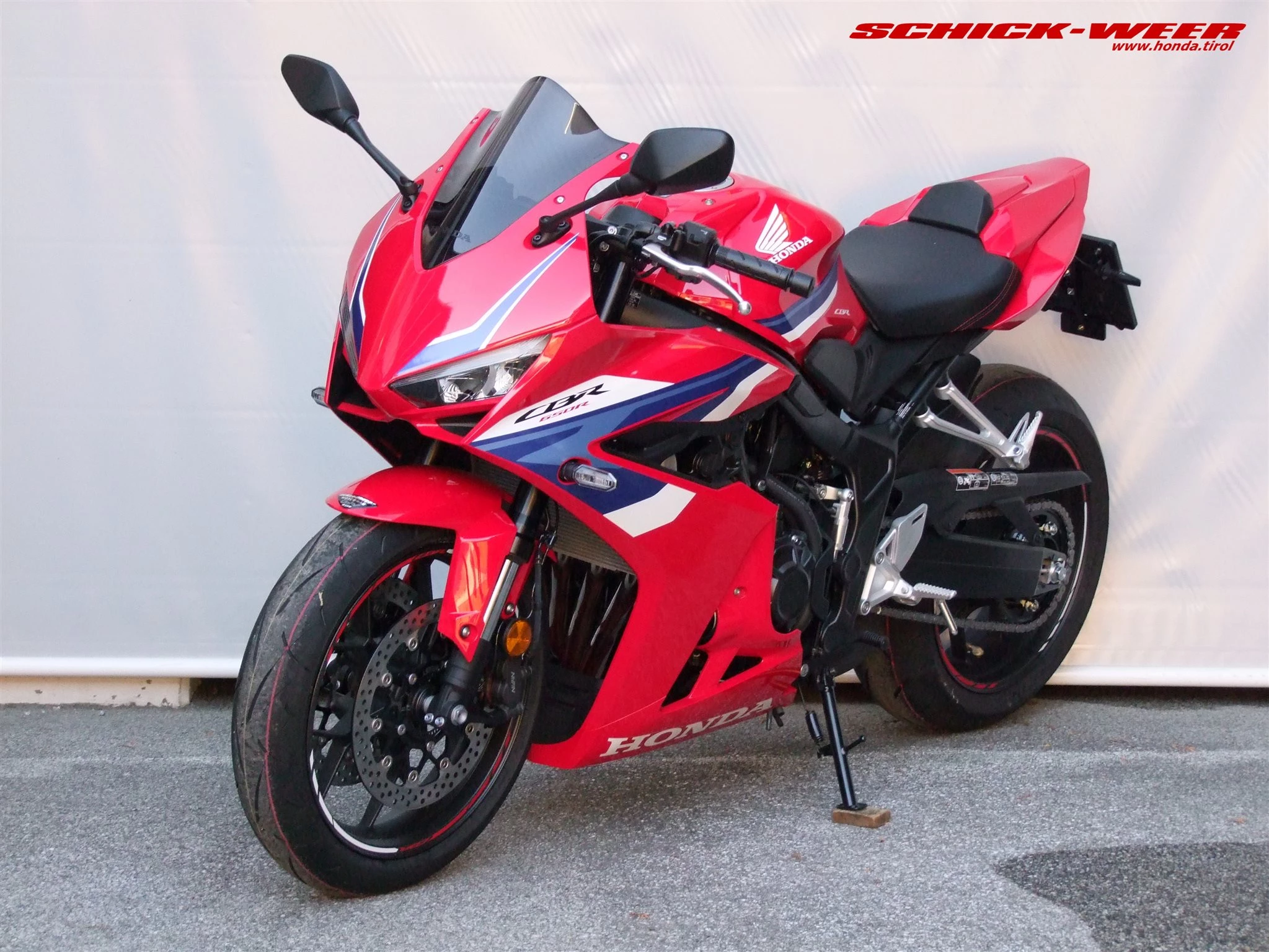 Sondermodell 30 Jahre Firma Schick. Honda CBR650R E-Clutch in rot: Neufahrzeug mit 0km inkl. Felgenstreifen, Tankpad oben und seitlich, getöntes Racing Windschild, kurzes Heck inkl. Rizoma Blinker, und Soziussitzabdeckung zum unschlagbaren Aktionspreis von € 11.990,-- ! (Wert des am Fahrzeug verbauten Zubehörs € 700,-- ohne Montage !)