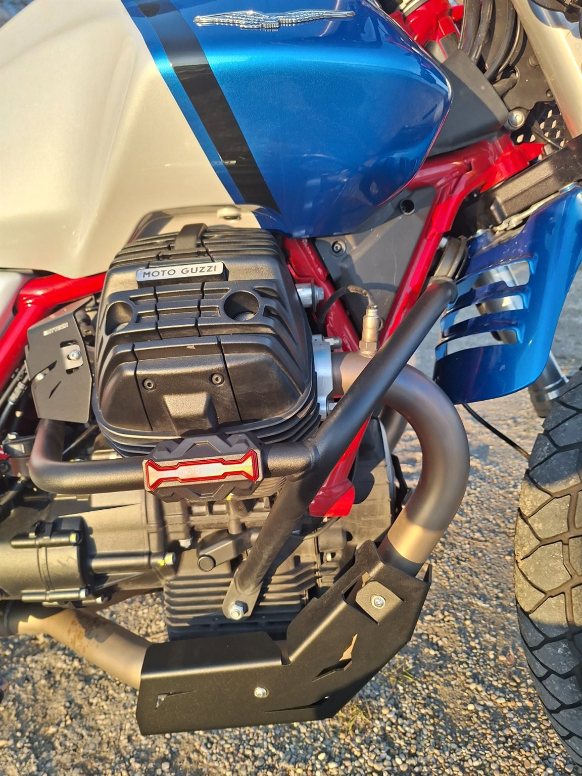 Verkaufe das Sondermodell der V85TT Evocative Graphics. Der Unterschied zum Standardmodell ist unter anderem der rote Rahmen, die Michelin Adventure Bereifung und die schönere Komfort Sitzbank. Die Guzzi schläft natürlich immer in der Garage und ist zugedeckt!
