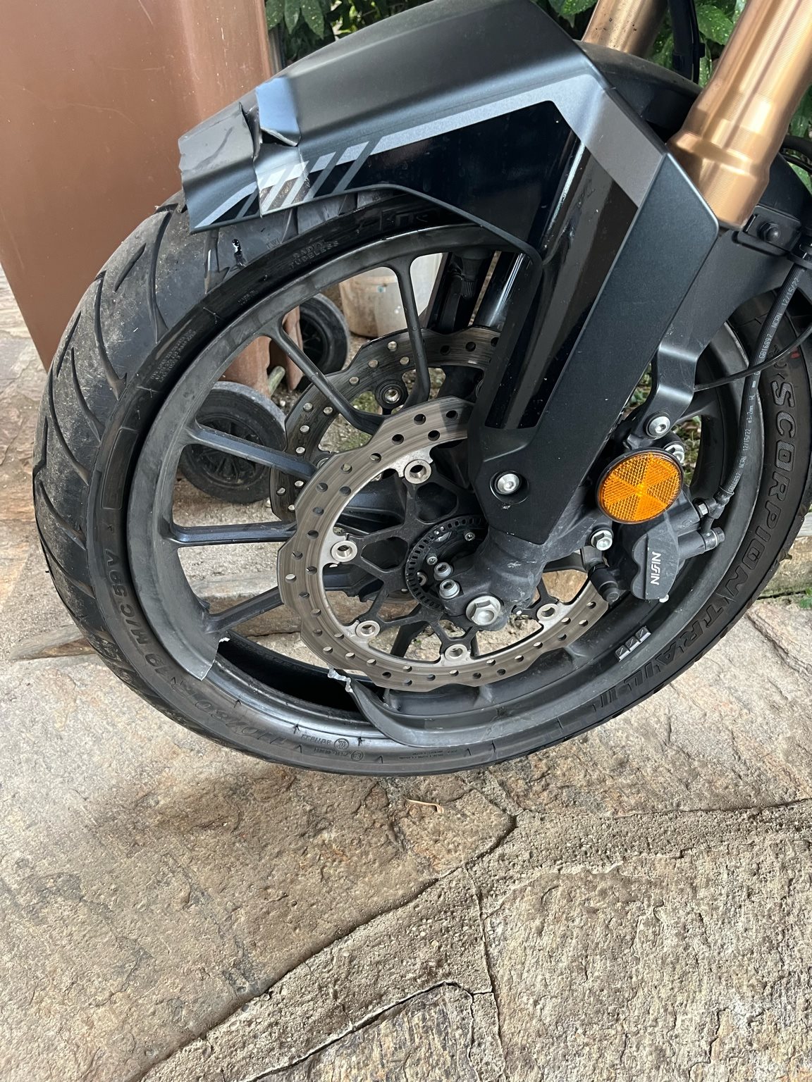 Vorderrad und Gabel beschädigt.