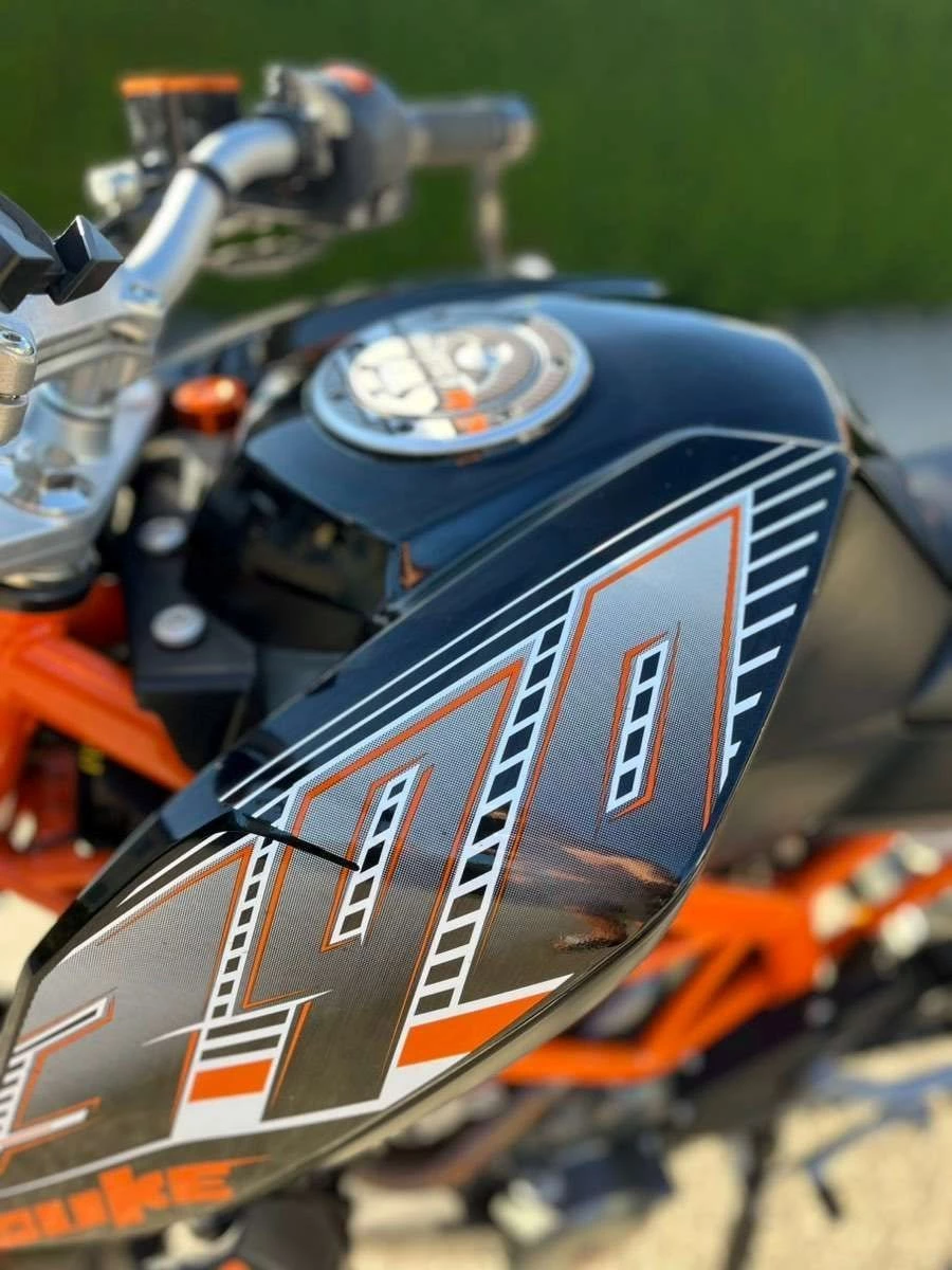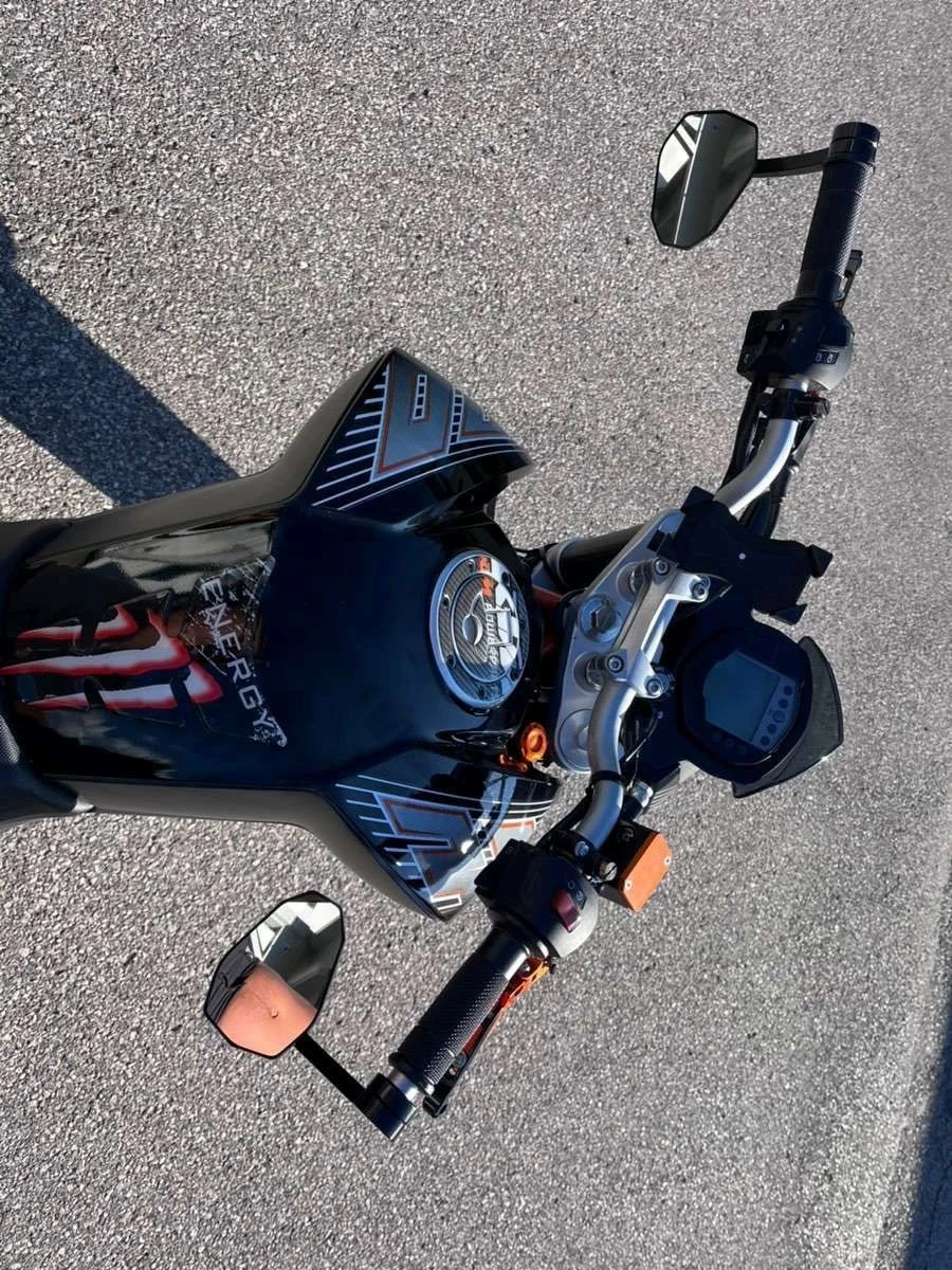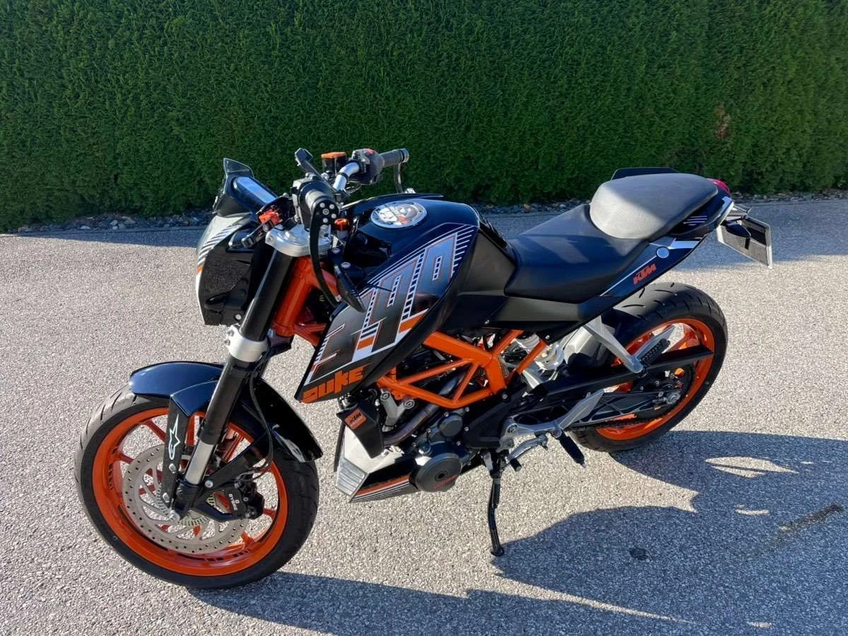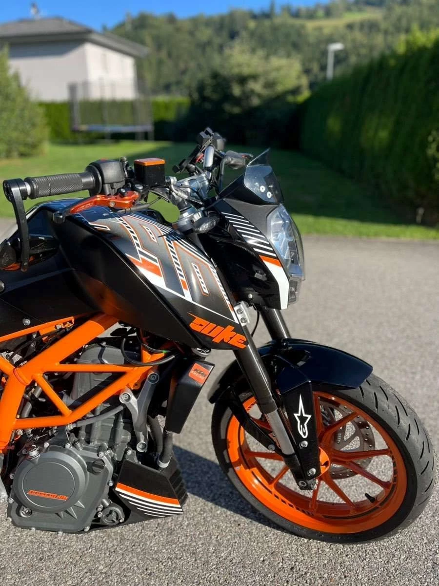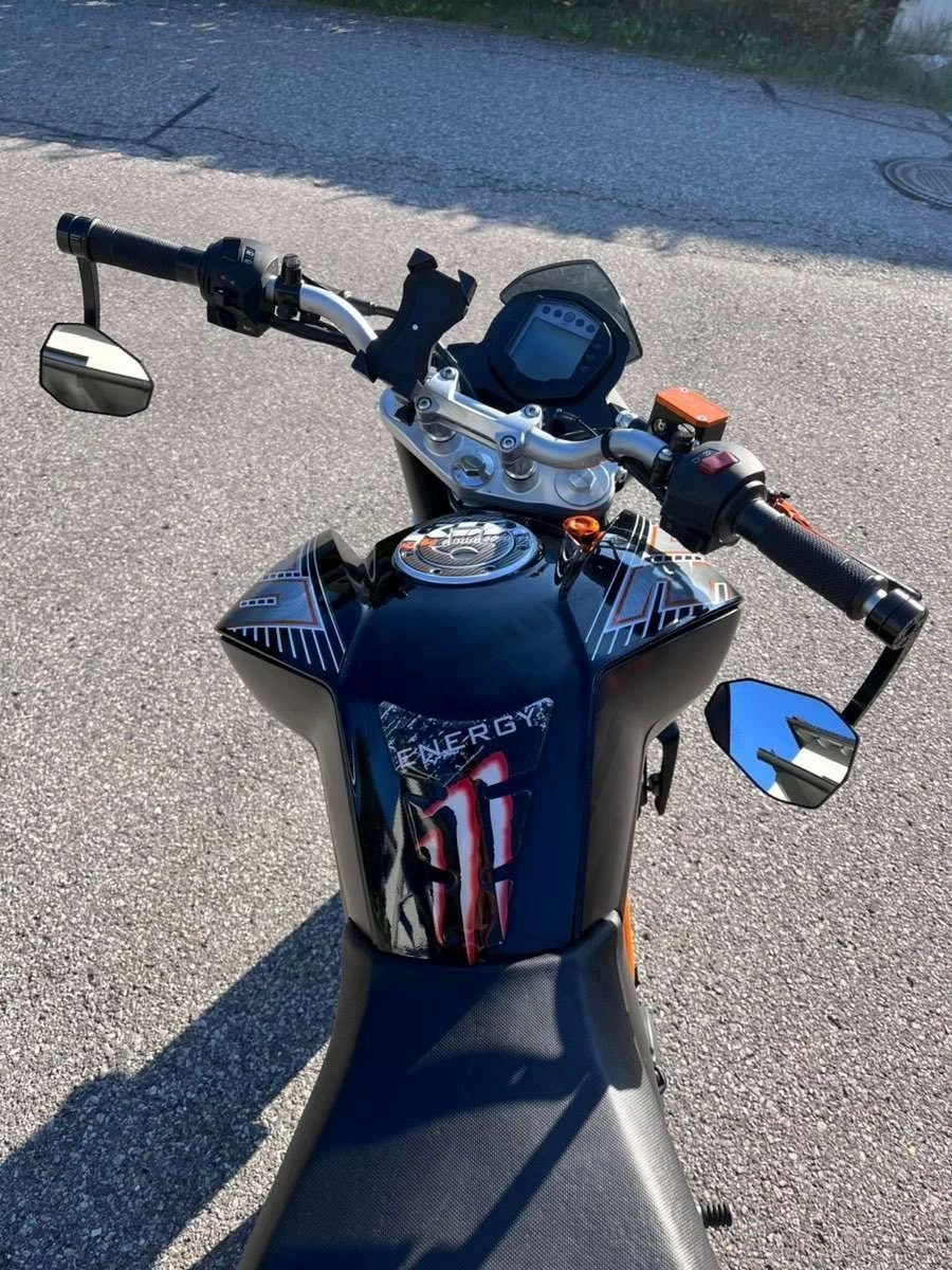 Es sind etliche KTM Powerparts verbaut wie zB: Brems- und Kupplungsgriffe, kurzes Heck usw., Spiegel Highsider, Handyhalterung, die Reifen sind neuwertig,