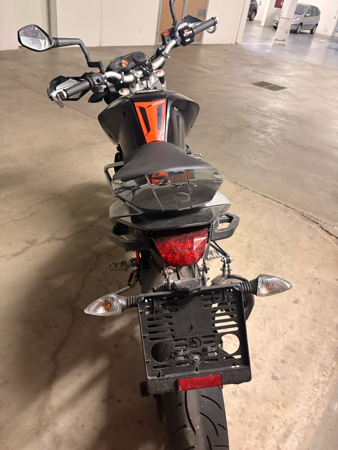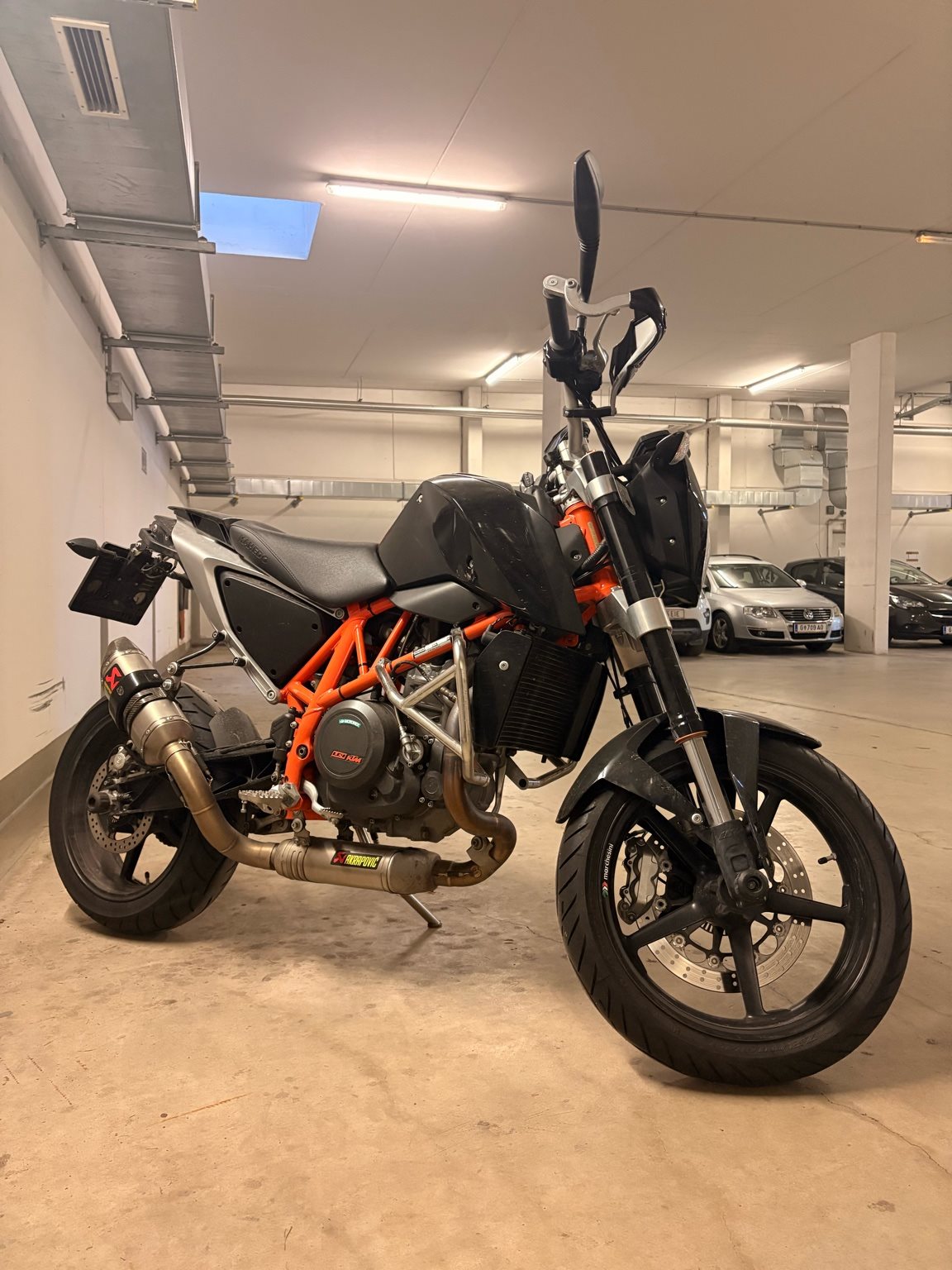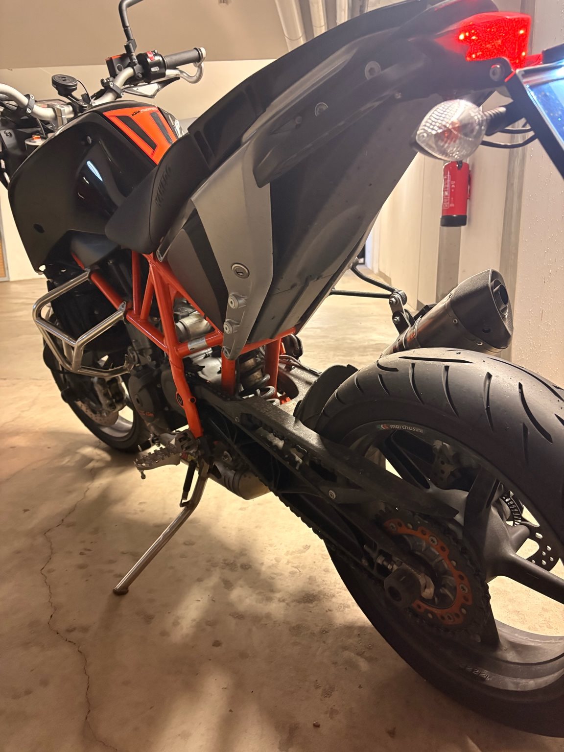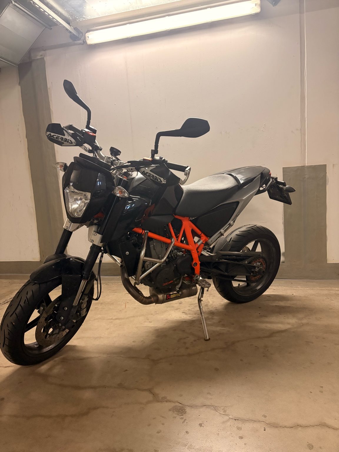 Ebenso ist eine komplette Akrapovic Auspuffanlage (legal), kurzes Heck und diverse KTM Powerparts verbaut.