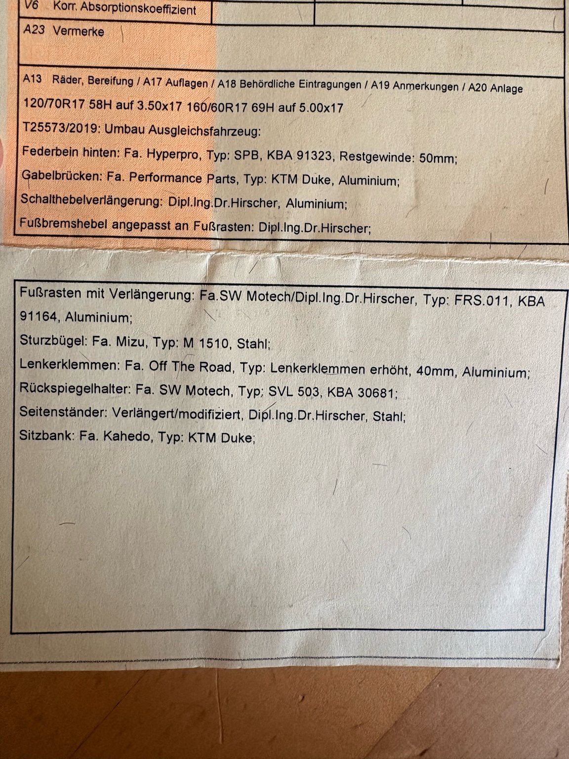 - Schalthebel und Fußbremshebel verlängerung angepasst an Fußrasten (nicht verbaut)