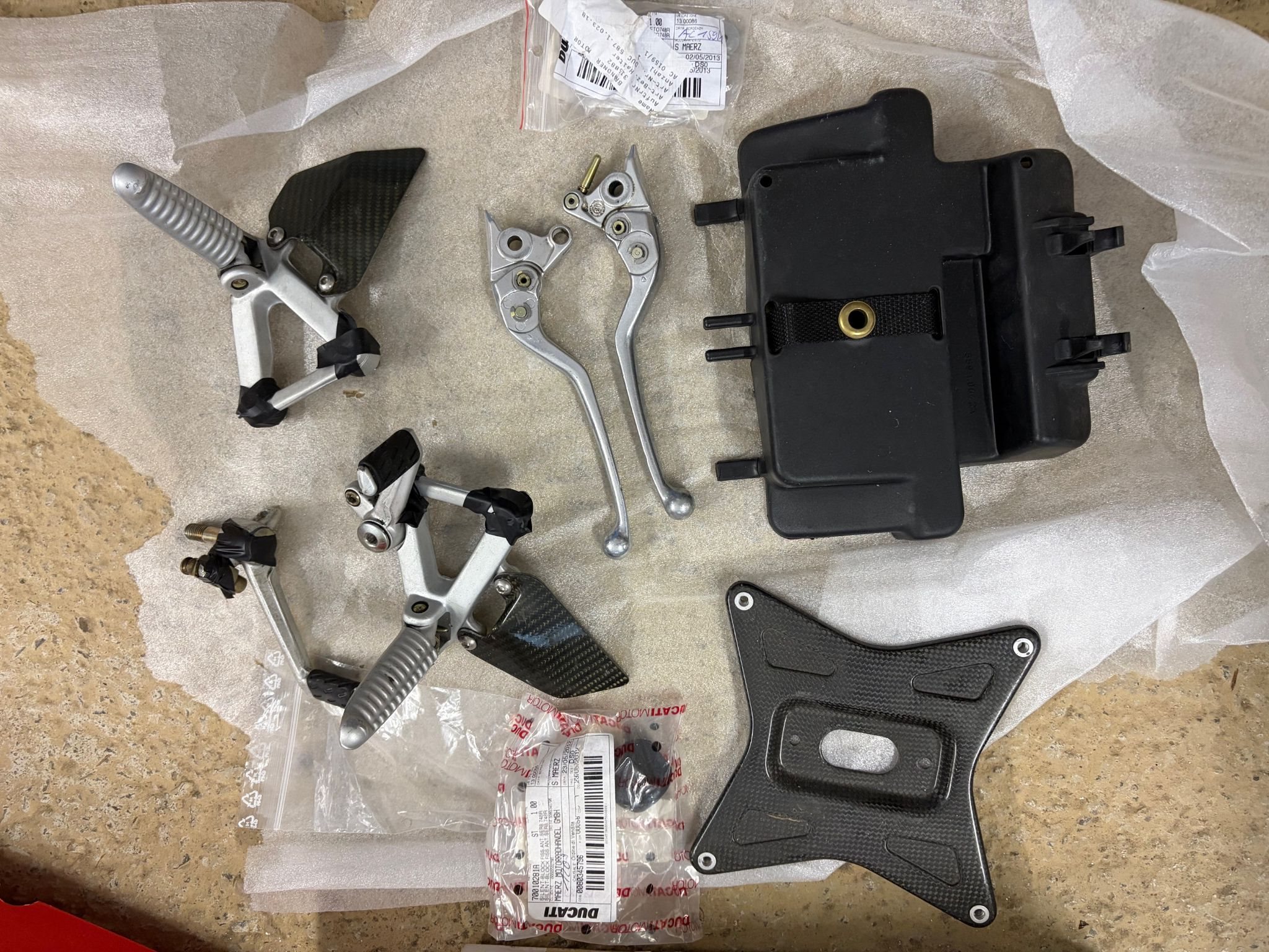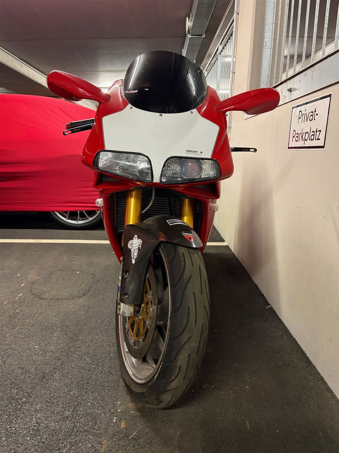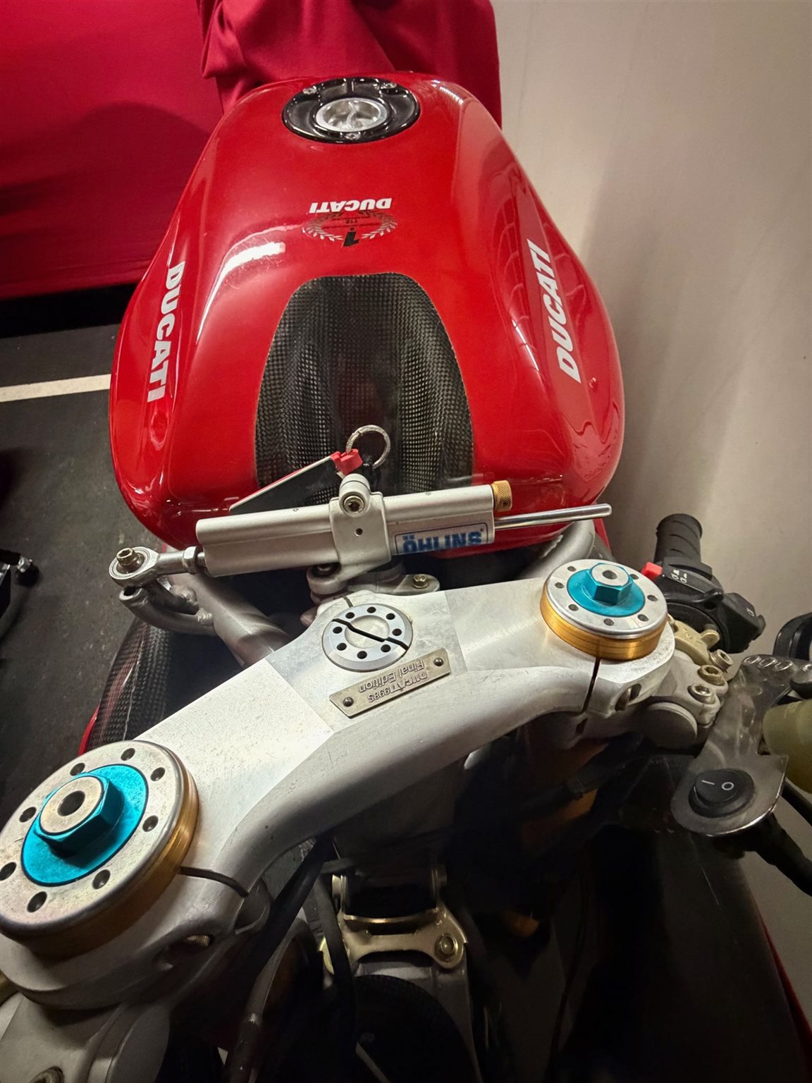 Technik: Das Motorrad stand längere Zeit trocken in meiner Sammlung. Der Motor läuft (Testastretta Power!), aber vor der Wiederinbetriebnahme auf der Straße ist ein Service (Zahnriemen/Flüssigkeiten/Reifen) notwendig.