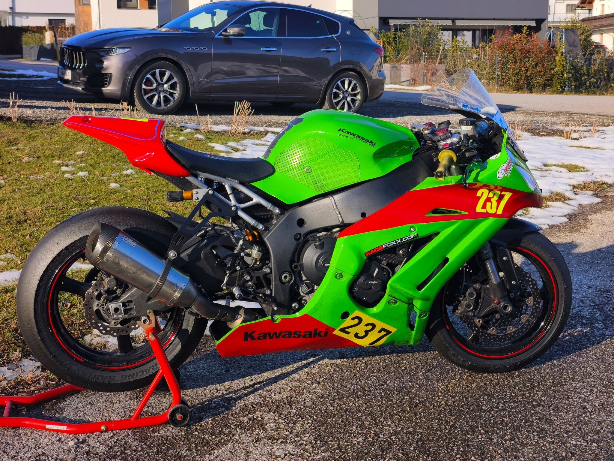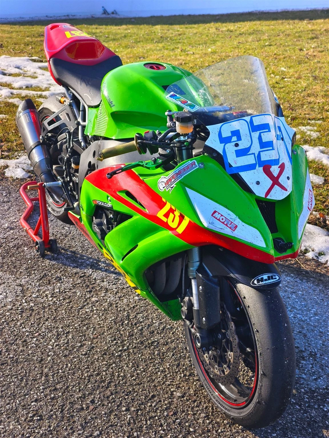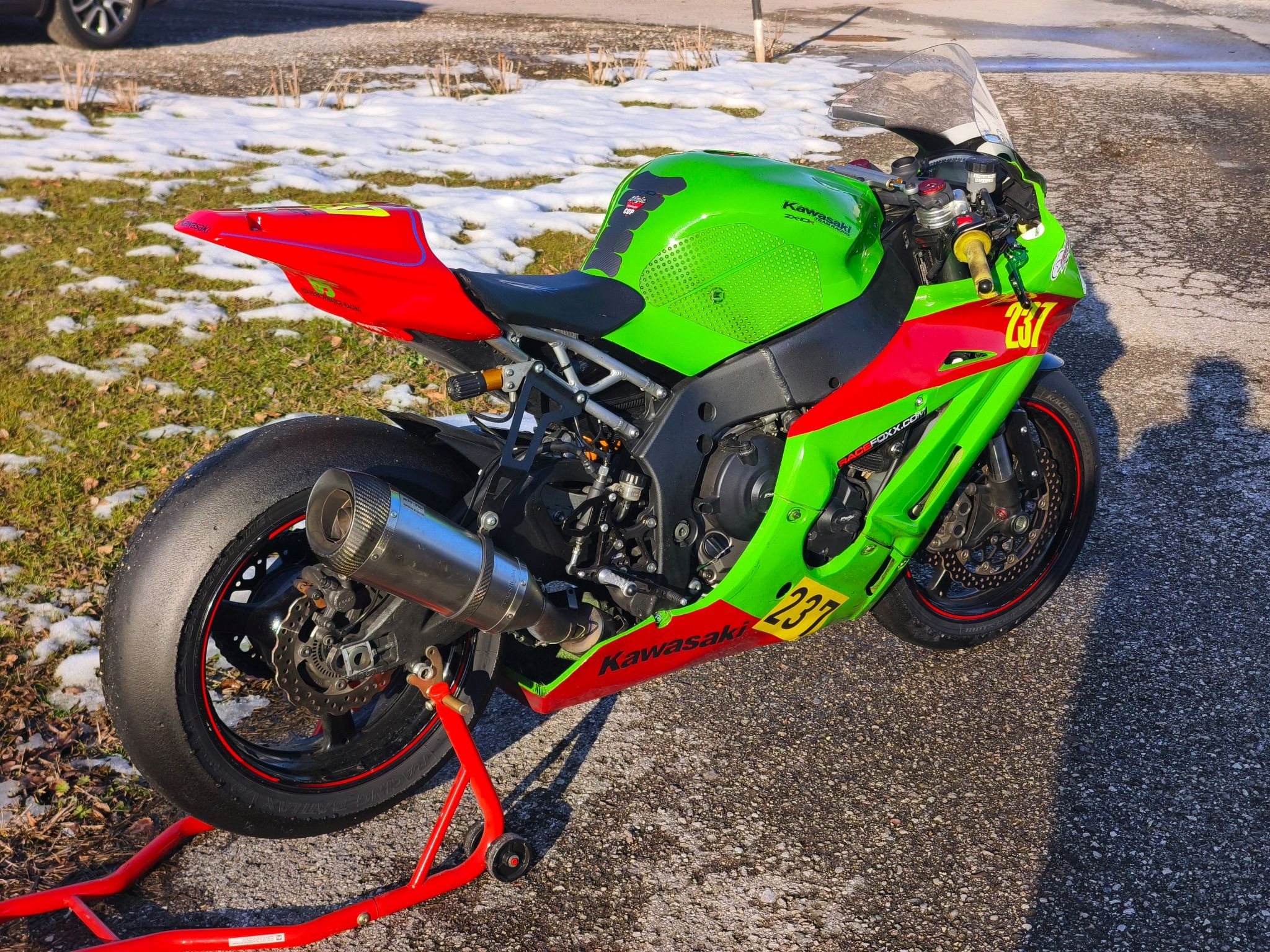 Zum Verkauf steht eine Kawasaki ZX-10R Racebike aus dem Baujahr 2011, die gut aufgebaut ist mit tollen Fahrwerk. Motor, Getriebe, Rahmen usw alles in Ordnung. Nach einem Motorschaden wurde im Jahr 2020 ein gebrauchter Motor aus dem Baujahr 2013 mit einer