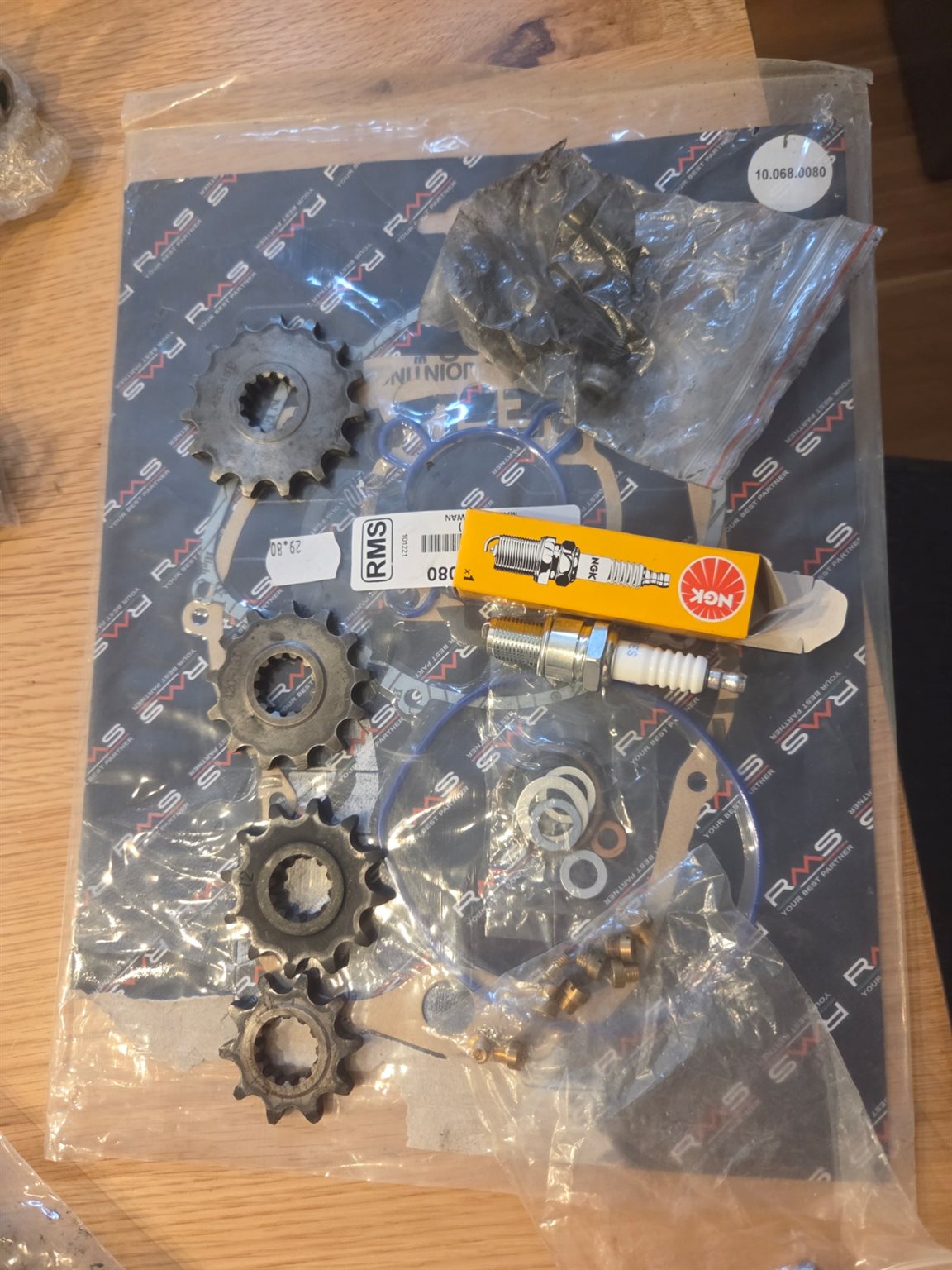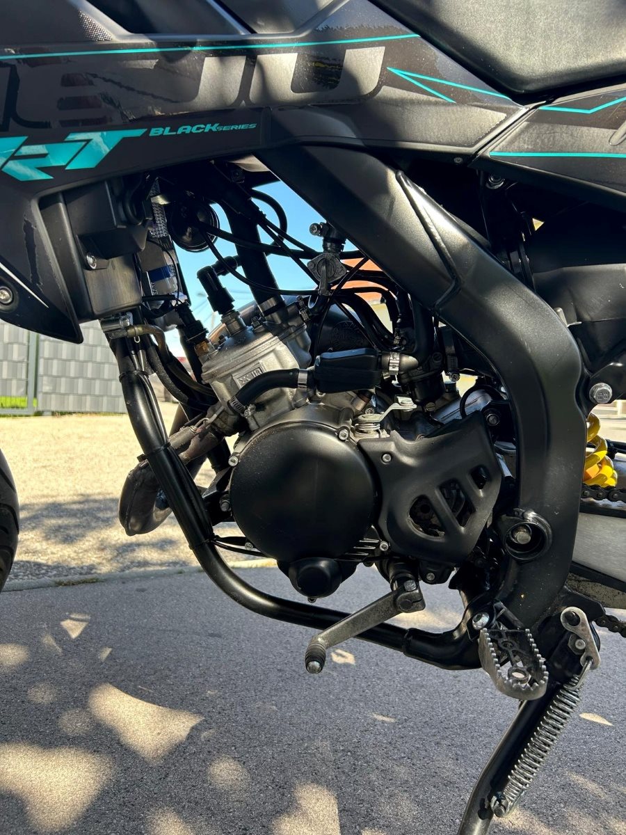 Es wurden 2 Spiegel angebracht, neue Halogen Blinker, Felgenrand wurde geklebt, eine neue Sportkupplung wurde 10/24 verbaut, neue Griffe, Zündkerze ist neu, Originale Auspuff Anlage, Ersatzspiegel, Original Blinker und Original neue Griffe, sowie Gasgriff und originaler Griff Schutz. 10,11,12,13,15 Ritzel für jede Übersetzung vorhanden und ein paar Düsen für den Vergaser und viele mehr siehe Fotos.