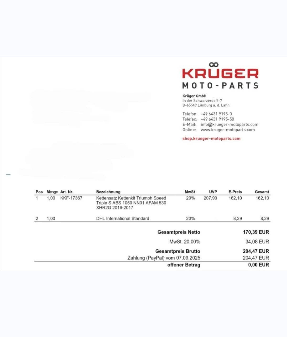Kettensatz komplett getauscht 09/2025 (Krüger Moto-Parts - siehe Foto)