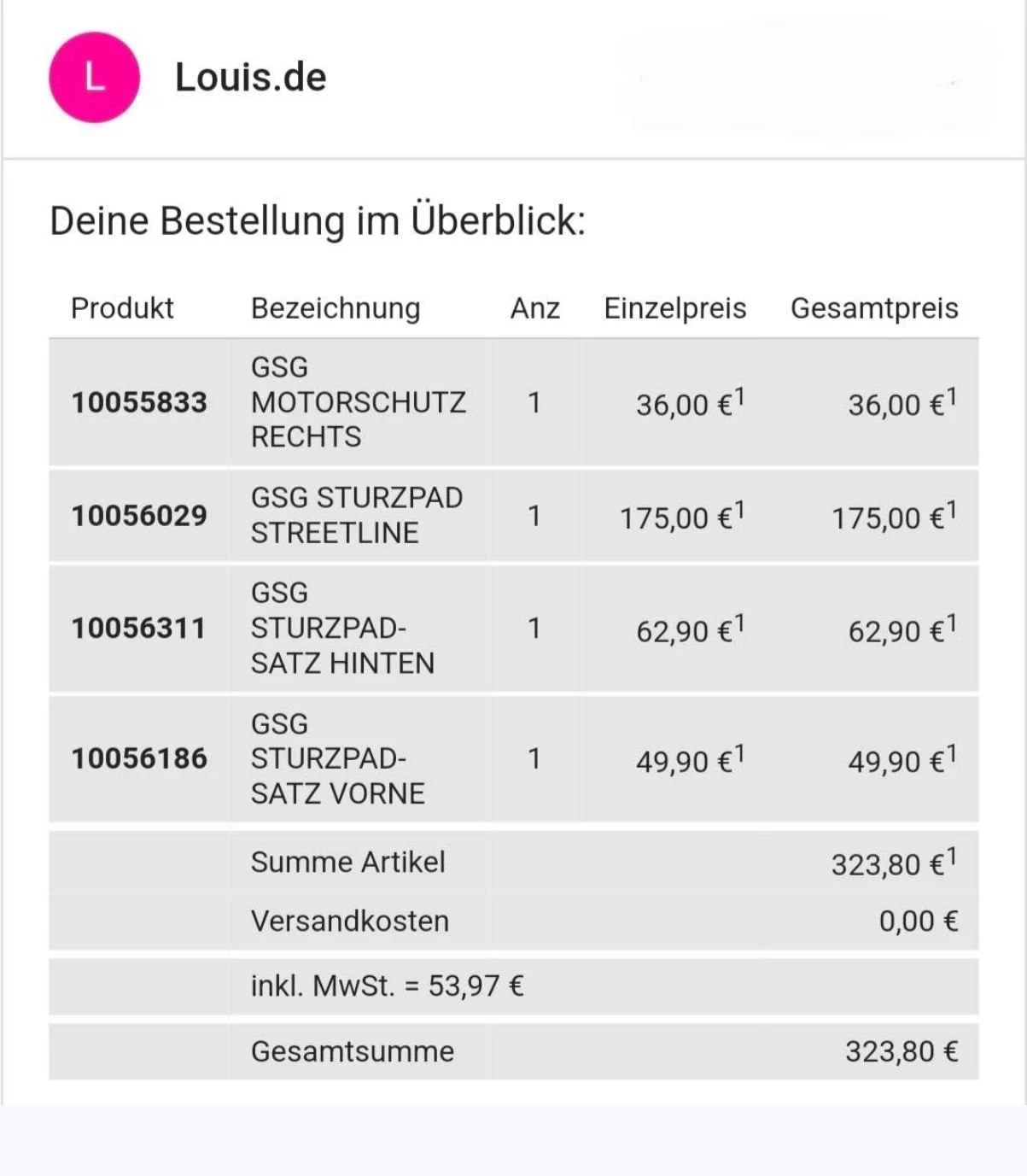 Sturzpads & Motorschutzteile von GSG (siehe Fotos)