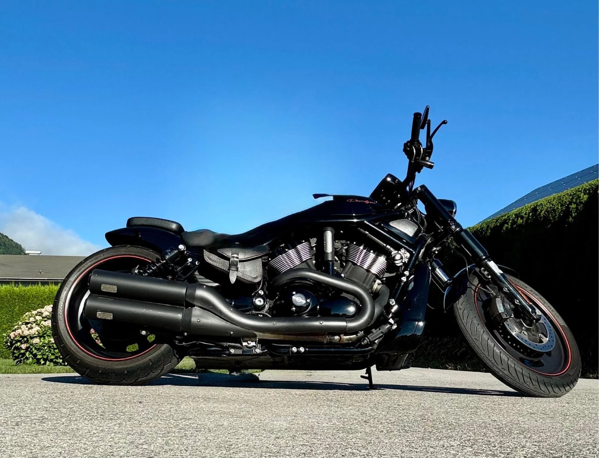 Verkaufe sehr schönes Custom Bike von Harley Davidson Night Rod in Denim Black mit rotem Harley Davidson Schriftzug. Servicegepflegt!