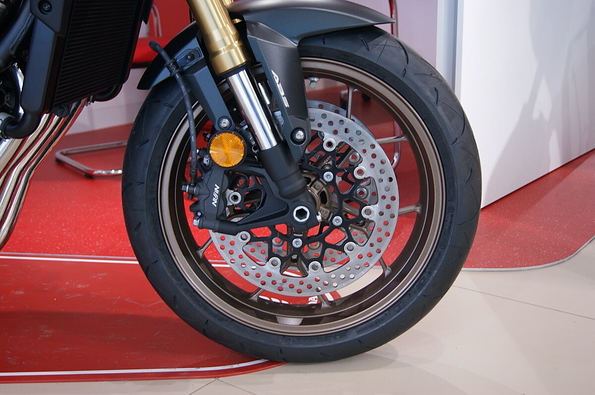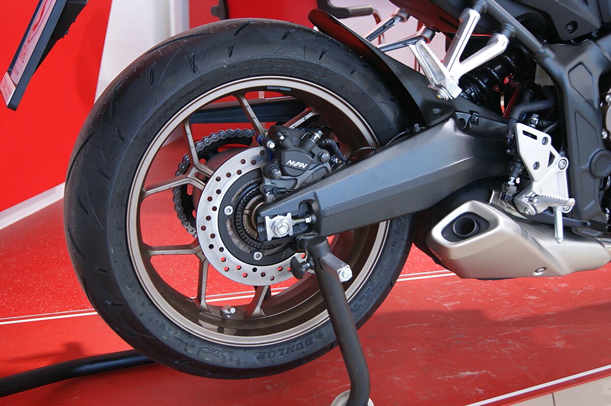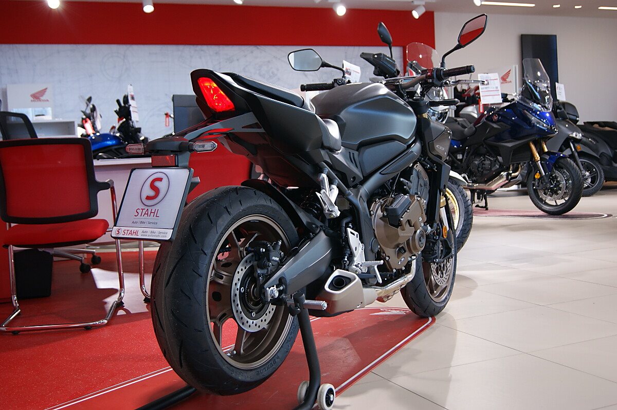 Leistungsstark unterwegsDu hast es in der Hand. Der DOHC-Vierzylinder-Reihenmotor leistet in der Spitze 70 kW (94 PS) - bis zu einer Drehzahl von 12.000 Umdrehungen pro Minute - und hat ein Drehmoment von 63 Nm. Honda Händler können das Bike für alle mit A2-Führerschein auf 35 kW drosseln und die Drosselung entfernen, sobald ein A1-Führerschein vorgelegt werden kann. Da Leistung Kontrolle braucht, verhindert die Anti-Hopping-Kupplung das Blockieren des Hinterrads bei starkem Bremsen und Herunterschalten. Das Notbremssignal (ESS) wird bei Vollbremsungen aktiviert und sorgt so für bessere Sichtbarkeit auf der Straße.