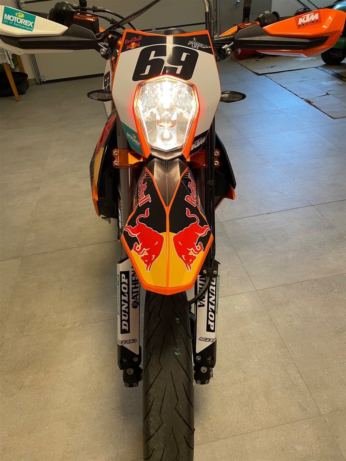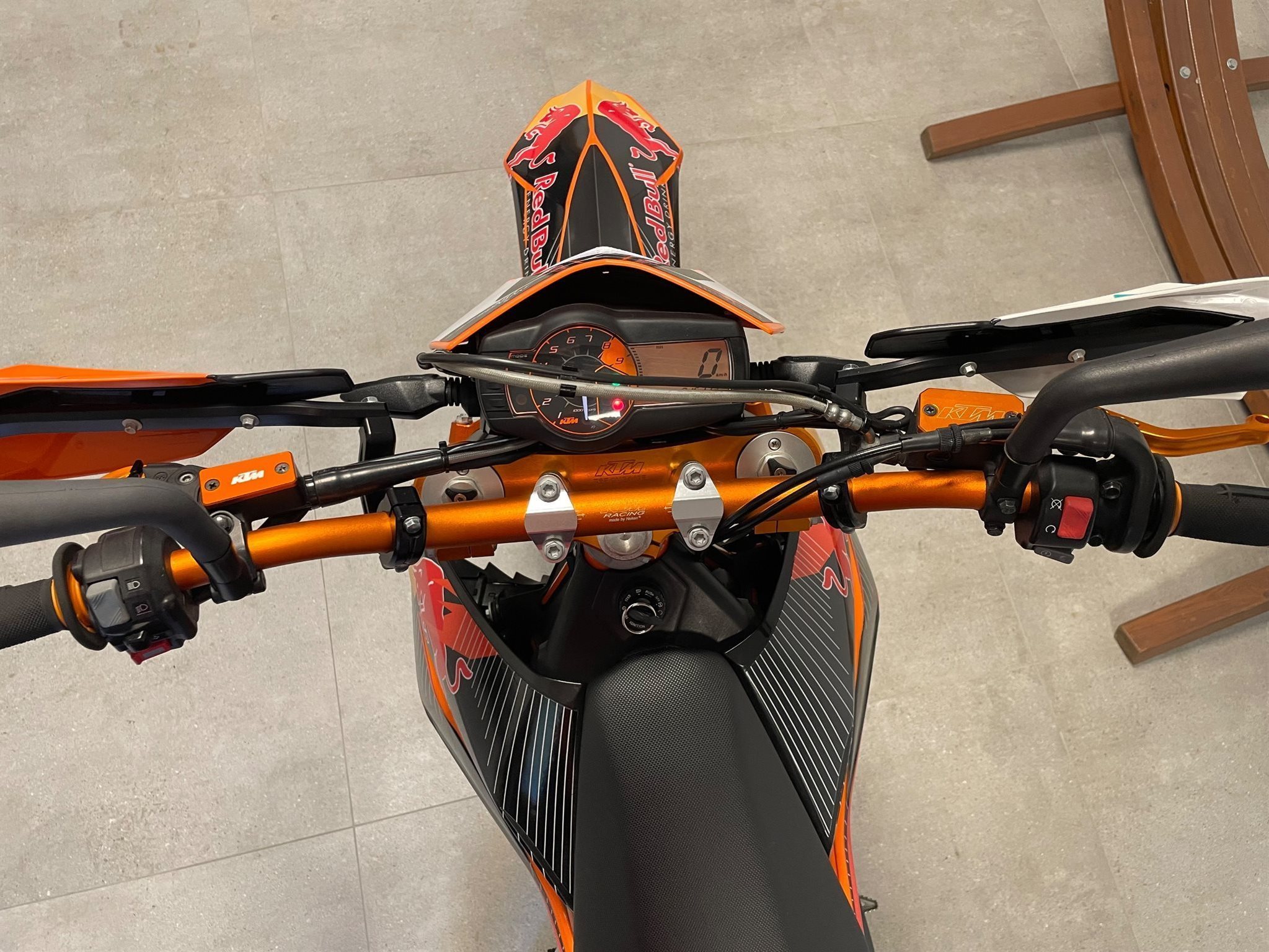 Habe zusätzlich zum RedBull Verbau auch noch 2 andere Dekore, weiß und schwarz bzw. alle Originalteile der KTM sind vorhanden