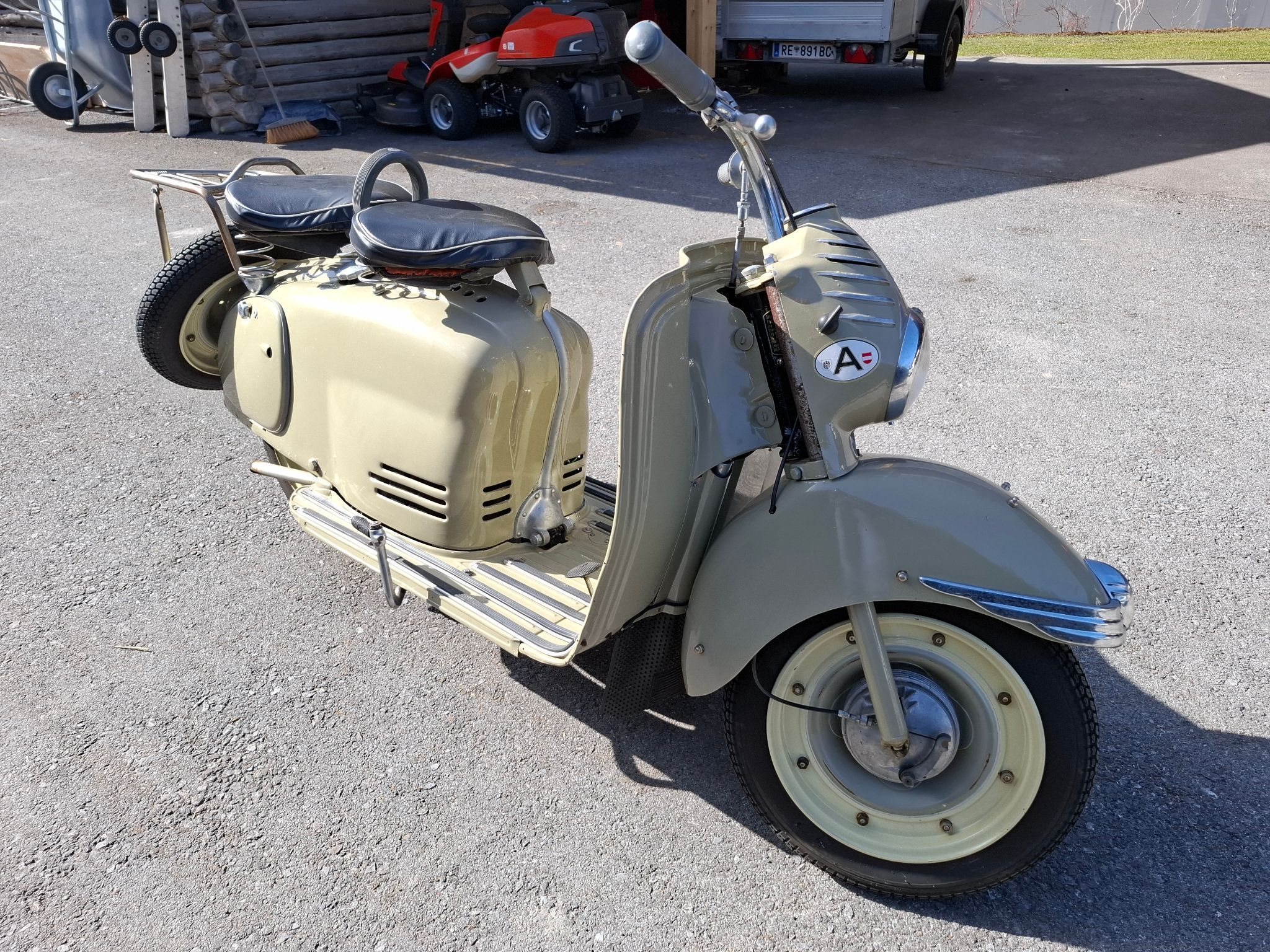 Puch Roller RL 125 kpl. orginal, aus 2. Besitz, orginal Papiere, orginal lackiert, keine Neu-Lackierung, kein Salz, nur einen Rostfleck rechts hinten unter der Batterie, wenig km 5400, alles funktioniert, nichts ausgeschlagen, mit Pickerl, neue Batterie, Privat Verkauf.