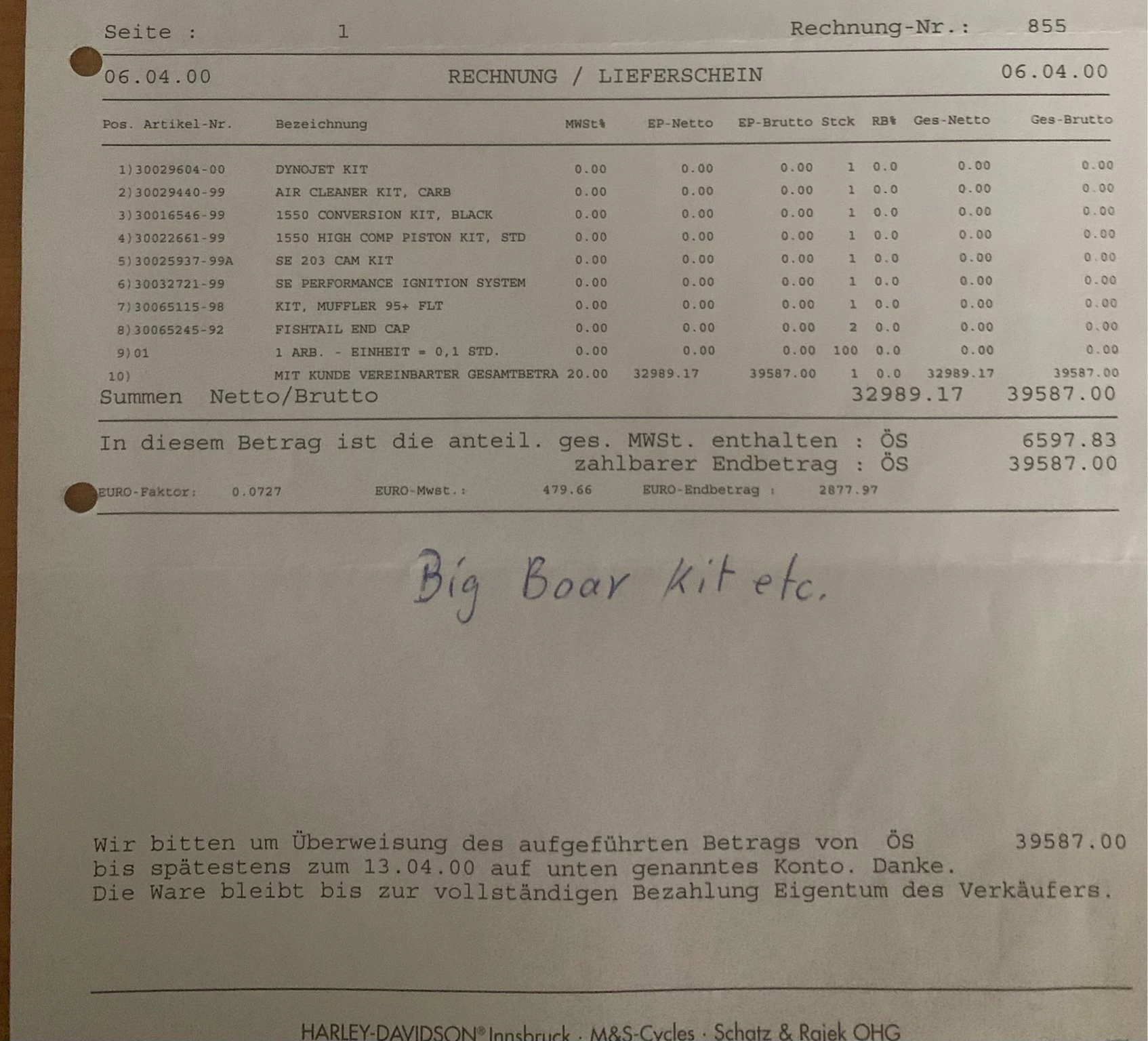- Speditionslieferung aus dem Ausland