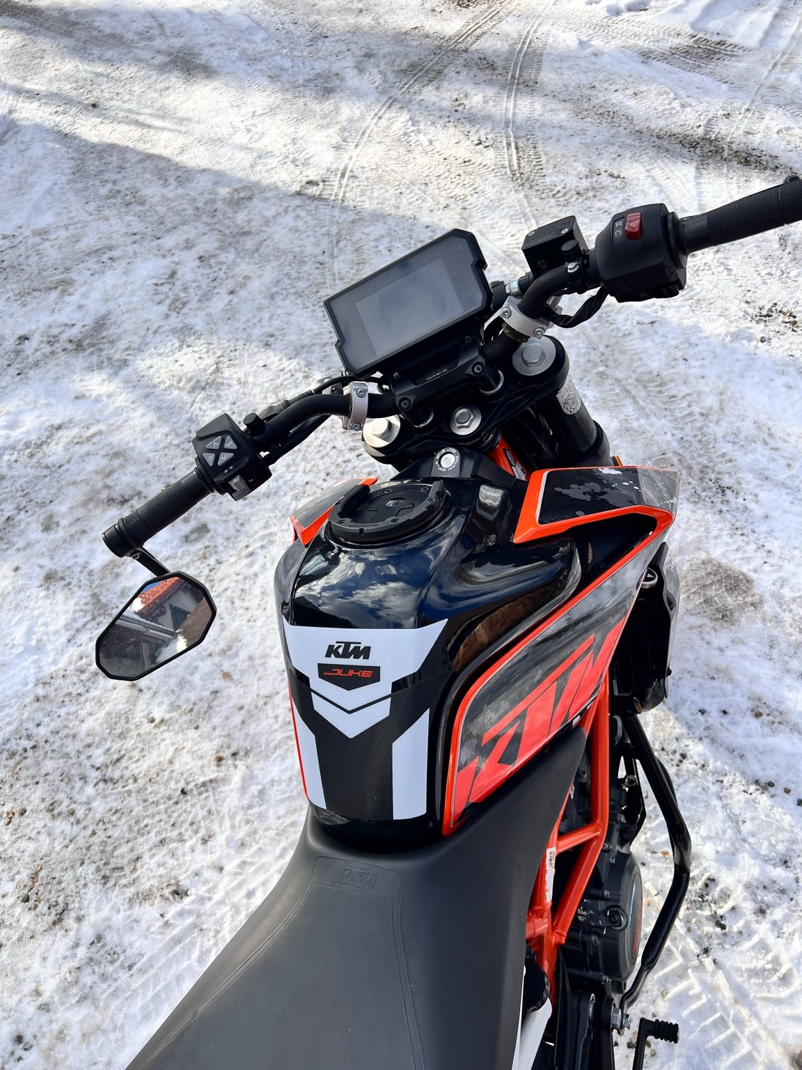 • Typische Duke-Ergonomie, die sich auch für größere Piloten eignet