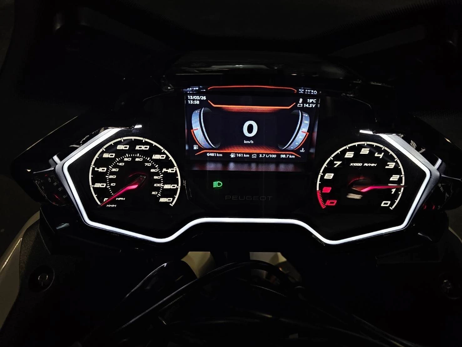 die Instrumente sind analog und digital kombiniert und original von dem weißen Lichtring umgeben. Auch hier lässt sich Helligkeit justieren.