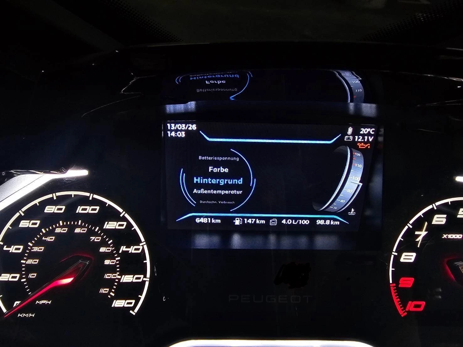 Wie auf den Fotos ersichtlich gibt es auch für das Display eine Vielzahl von Einstellungen, Farben, Hintergrund, Navigation über Peugeot App . Außentemperatur, Restkilometer usw.