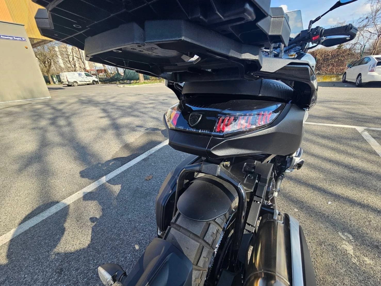 Weiters dabei auch ein Peugeot Topcase Werkseitig in Rollerfarbe lackiert, das Topcase lässt sich vergrößern um 2 Vollvisierhelme verstauen zu können.