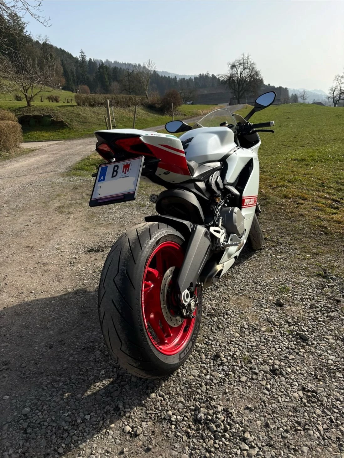 Ride-by-Wire, dreistufiges Race ABS, Riding Modes (Wet, Sport und Race ), Ducati Traction Control (DTC), Ducati Quick Shift (DQS) und Engine Brake Control (EBC); Bauartgeschwindigkeit 270 km/h