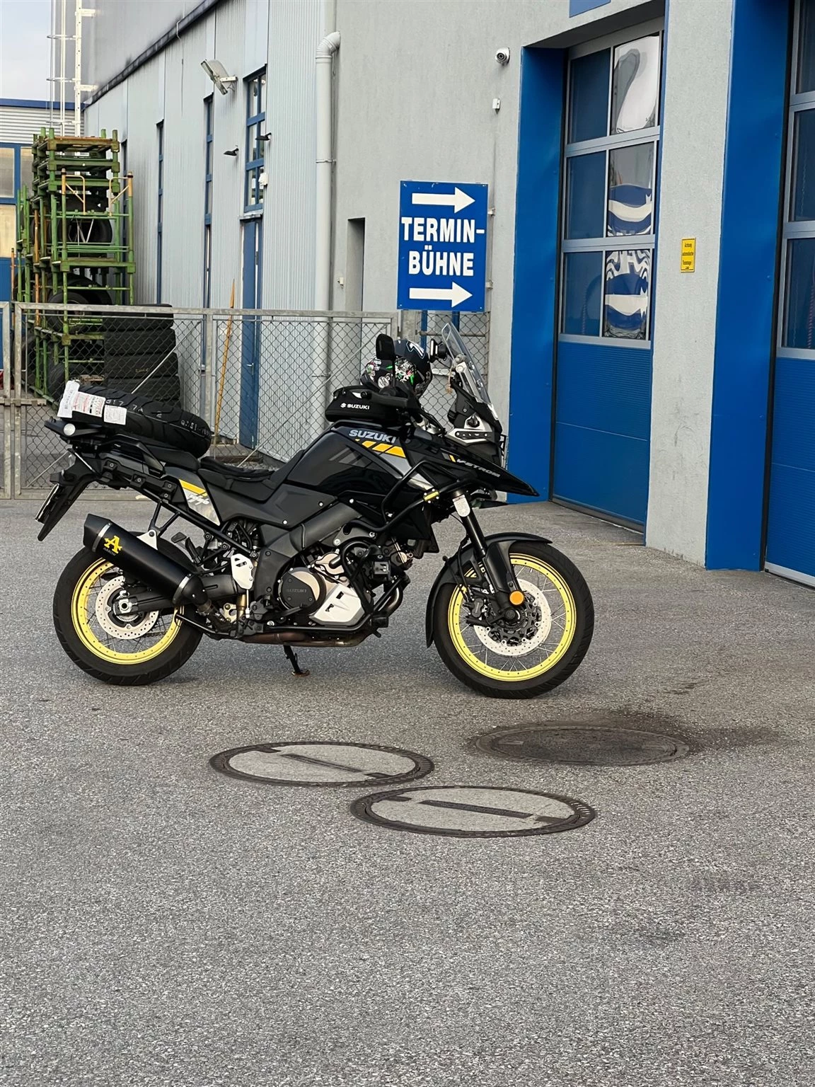 Tanksturzbügel u.Motorschutzbügel und Vorderachsschutz sowie org. seitenkoffer und Givitopcase und Arrow Endtopf mit Eu Betriebserlaubnis(org.Auspuff vorhanden)