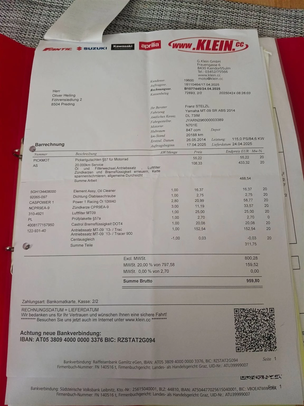 20000 Service von einer Fachwerkstatt gemacht im 2025.