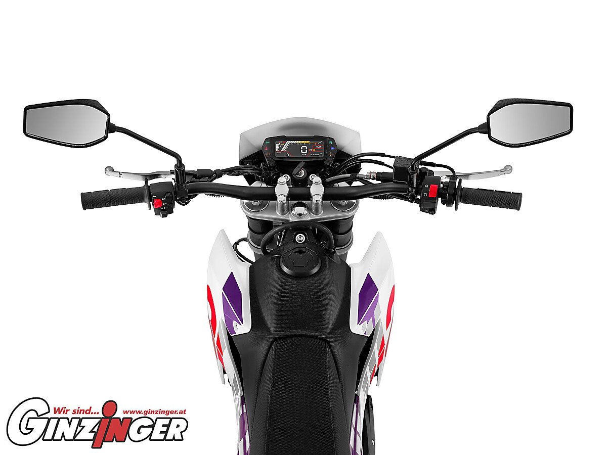 Die Aprilia RX 125 ist der jüngste Erbin der Erfolgsgeschichte von Aprilia im Off-Road-Wettbewerb, ein hervorragender Ruf, der über die Jahre hinweg durch leichte, leistungsstarke Motorräder aufgebaut wurde, die sowohl auf alltäglichen Straßen als auch auf den anspruchsvollsten Off-Road-Strecken Spaß machen. Ein authentisches Aprilia-Motorrad, erneuert in Design, Ausstattung und Motor, bereit, jedem, der den Lenker ergreift, große Emotionen zu bieten.