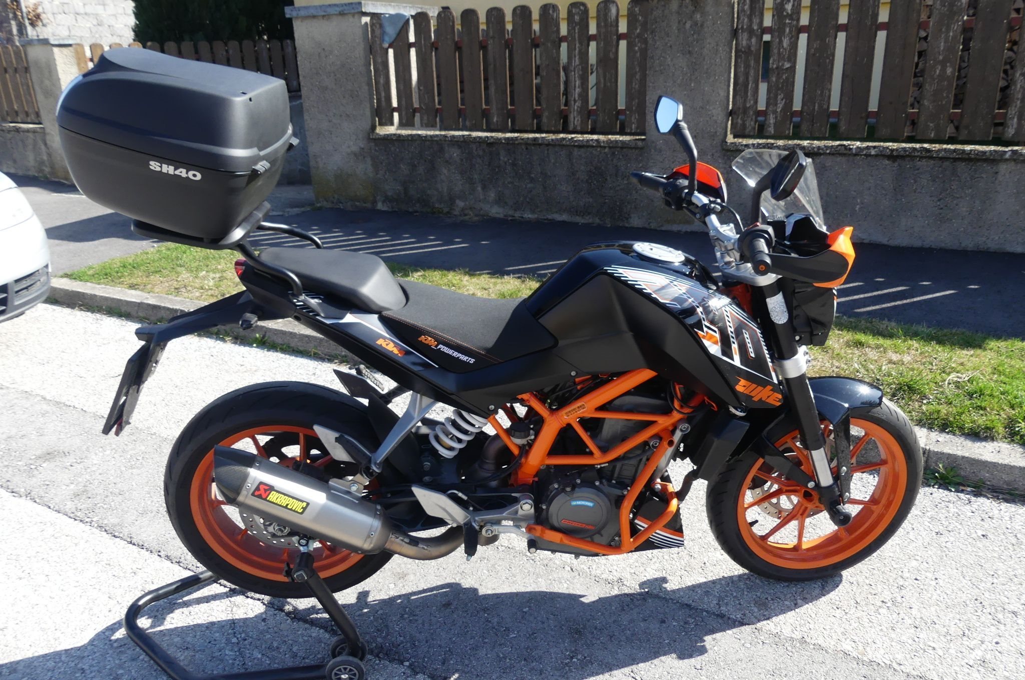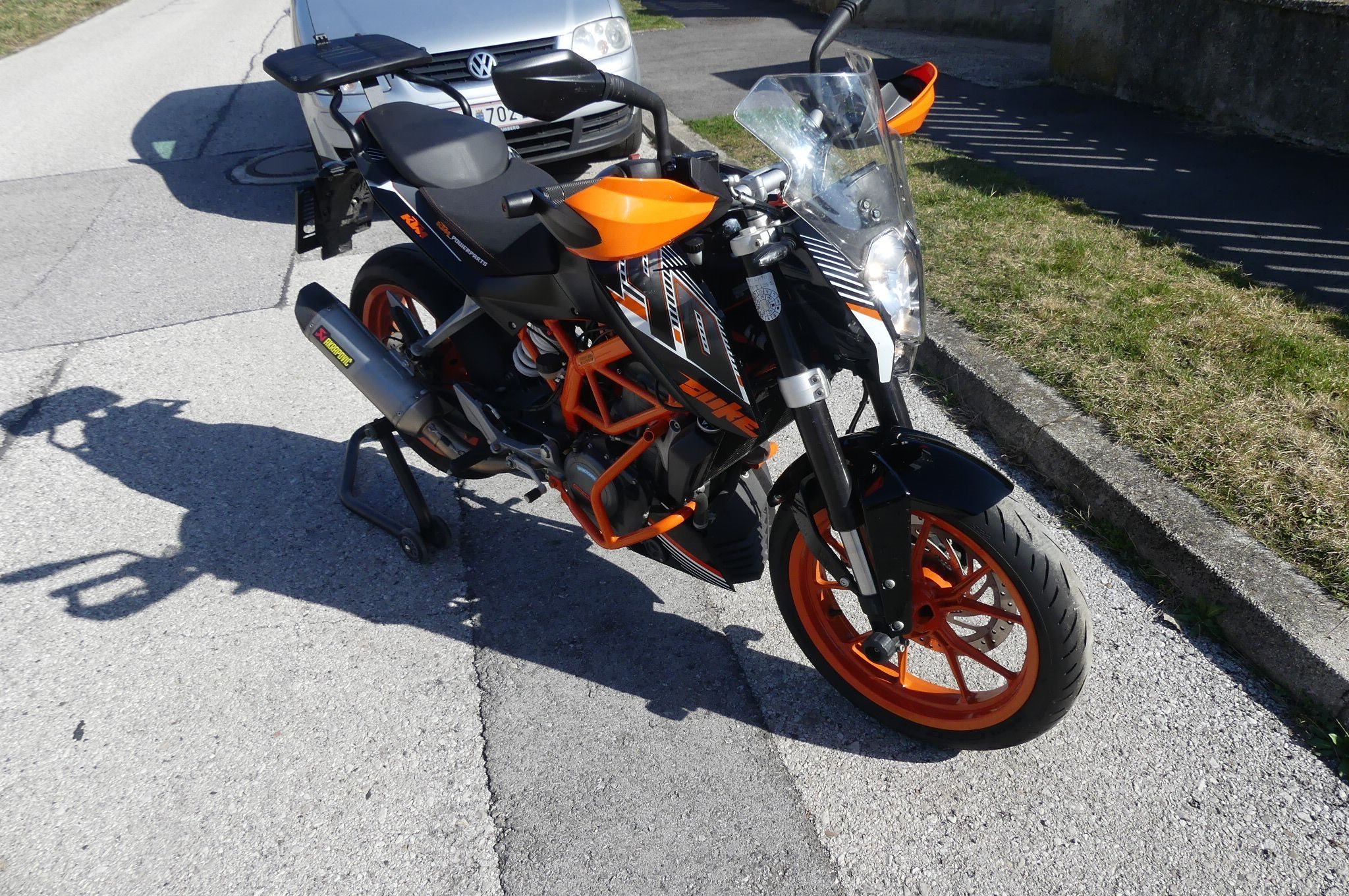 Verkaufe Top gepflegte 390er Duke meiner Frau, das Motorrad ist unfallfrei und garagengepflegt, Akrapovoc Auspuff, Winschschild, Handguard, Sturzbügel, Sturzpads, Kofortsitzbank, Topcase, Heckheber; die Originalteile sind vorhanden und im Kaufpreis dabei.