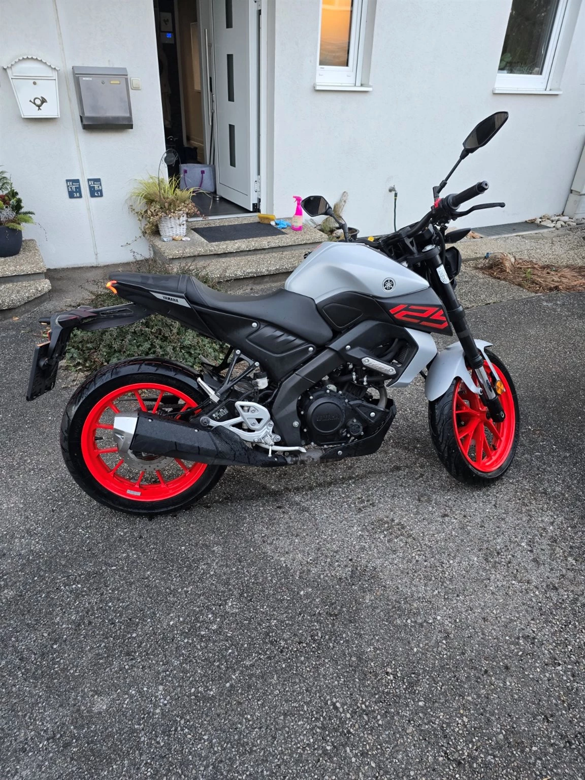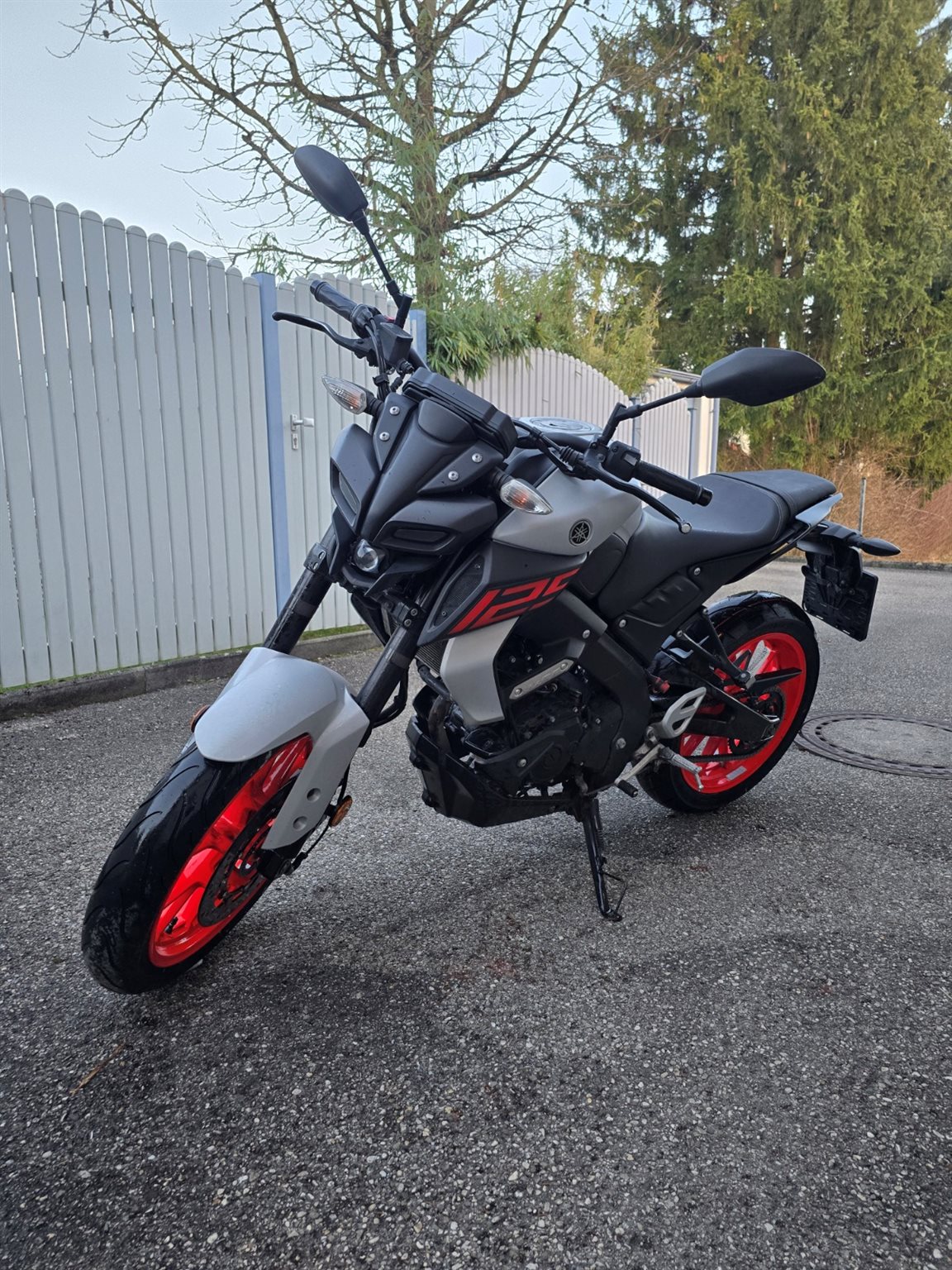Ich gebe meine YAMAHA MT125 her. Da ich einen Aufstieg auf den A2 Führerschein mache. Sie hat nie Probleme gemacht und ist immer top gefahren. Ich habe sie im Winter und immer wenn ich länger nicht gefahren bin sie in die Garage gestellt. Mich hat es einmal mit ca. 10km/h geschmissen, es ist aber nicht viel passiert(siehe letztes Bild).Der Hinterreifen, der Antriebssatz und die Bremsflüssigkeit wurden im September gemacht (wurde danach nur mehr ca. 40km bewegt). Ersatzschlüssel ist leider nicht vorhanden, kann aber auf wunsch gemacht werden. Bei ernsthaften Interesse, schreiben Sie mir gerne eine Nachricht.