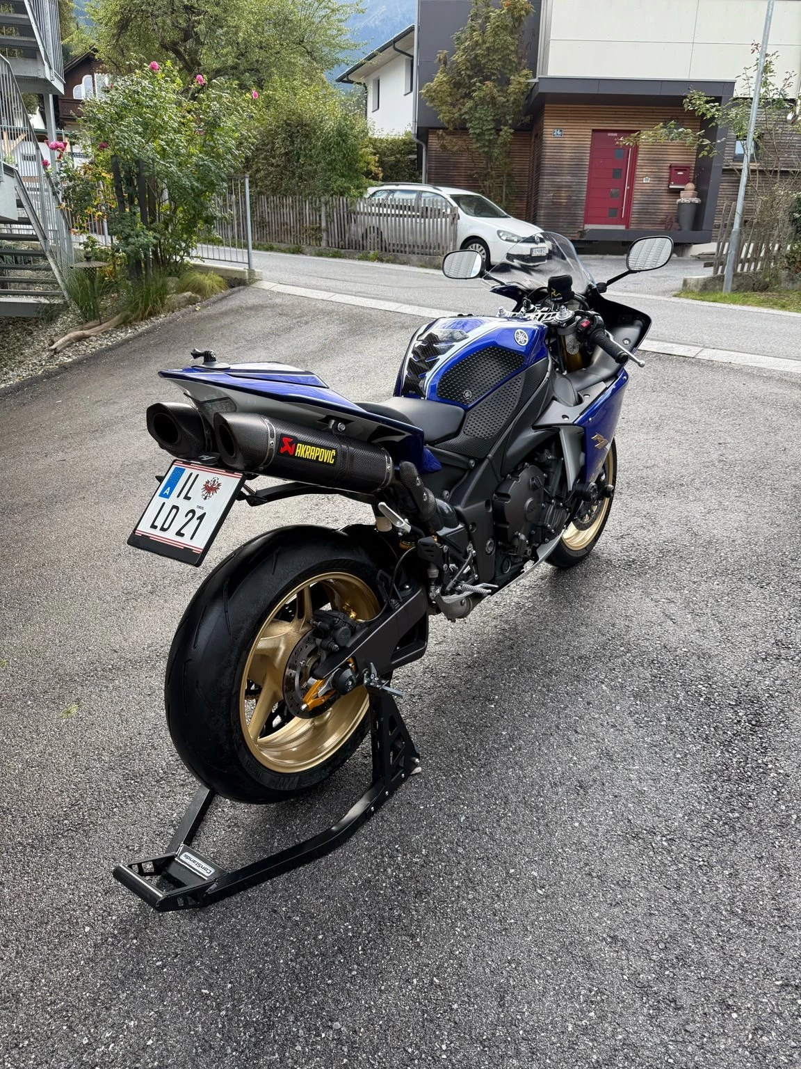 Zum Verkauf steht eine Yamaha R1 RN22 in der Farbe Yamaha Blue.