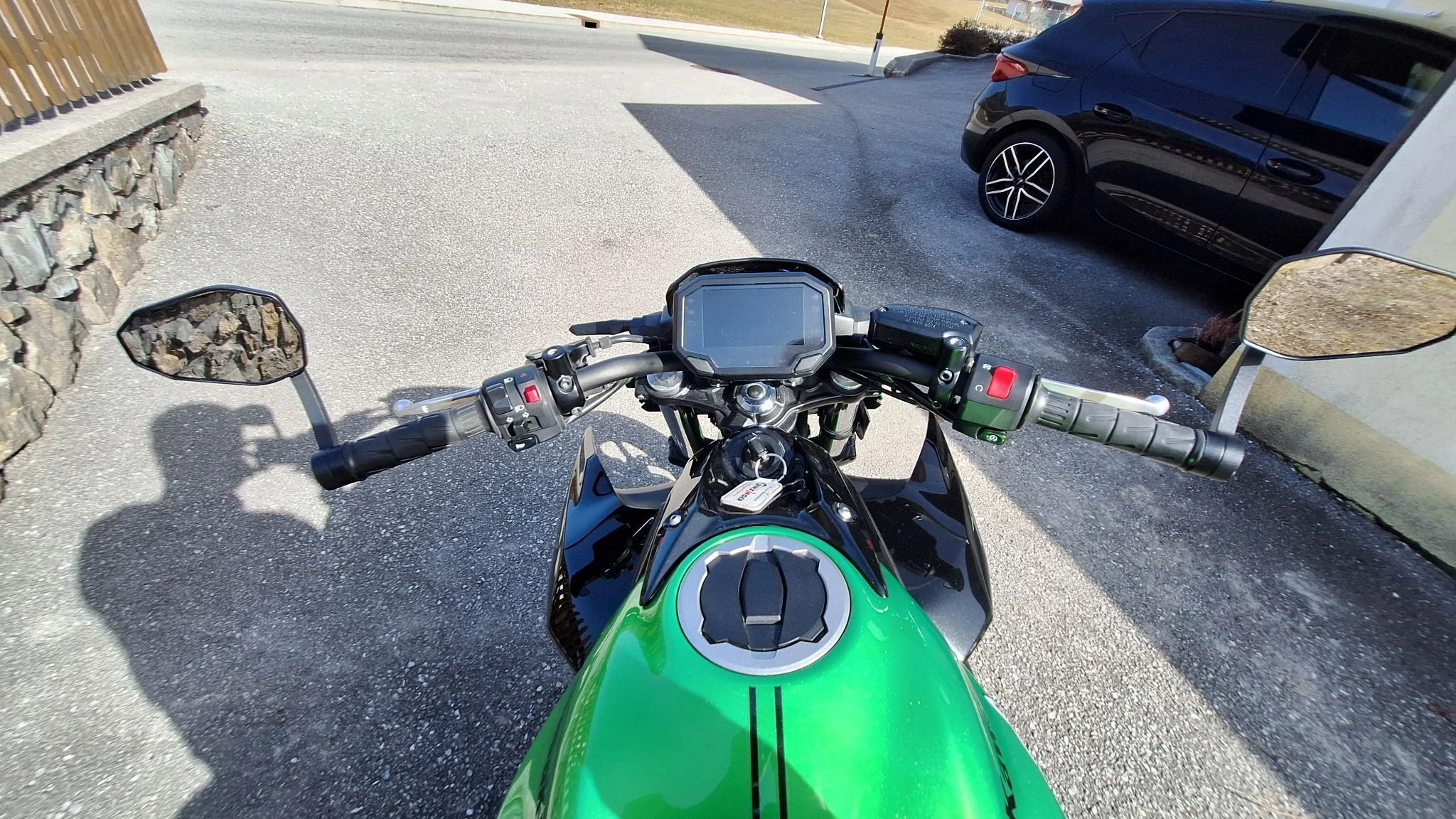 Leider ist sie umgefallen und hat eine Schramme am Tank. Diese wurde durch den Alpinestars Sticker überklebt und ist so nicht mehr sichtbar.