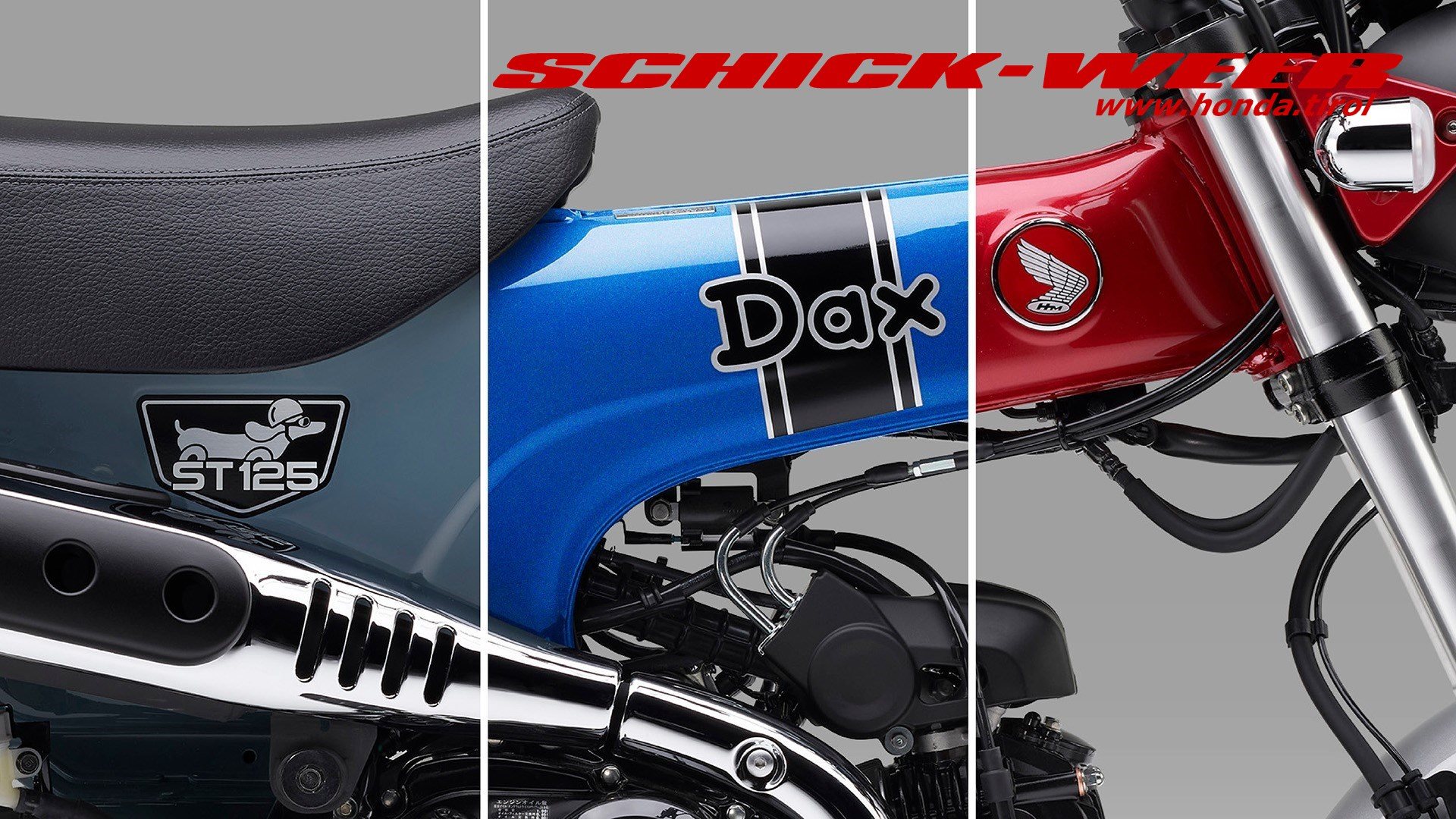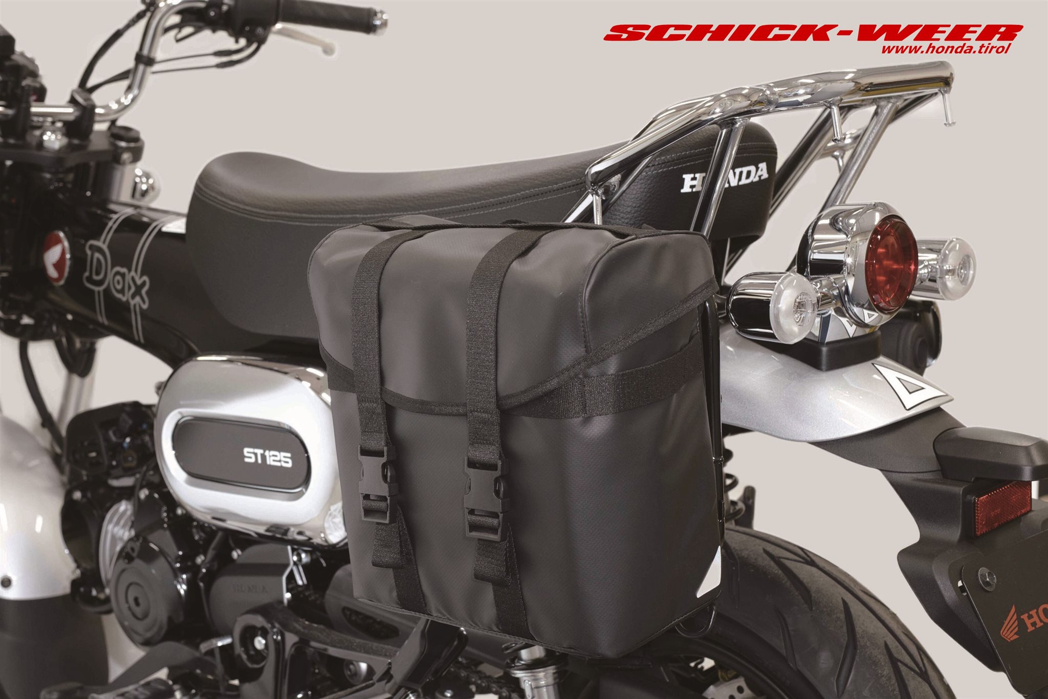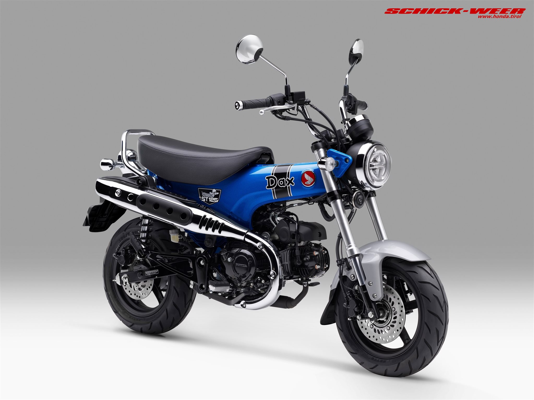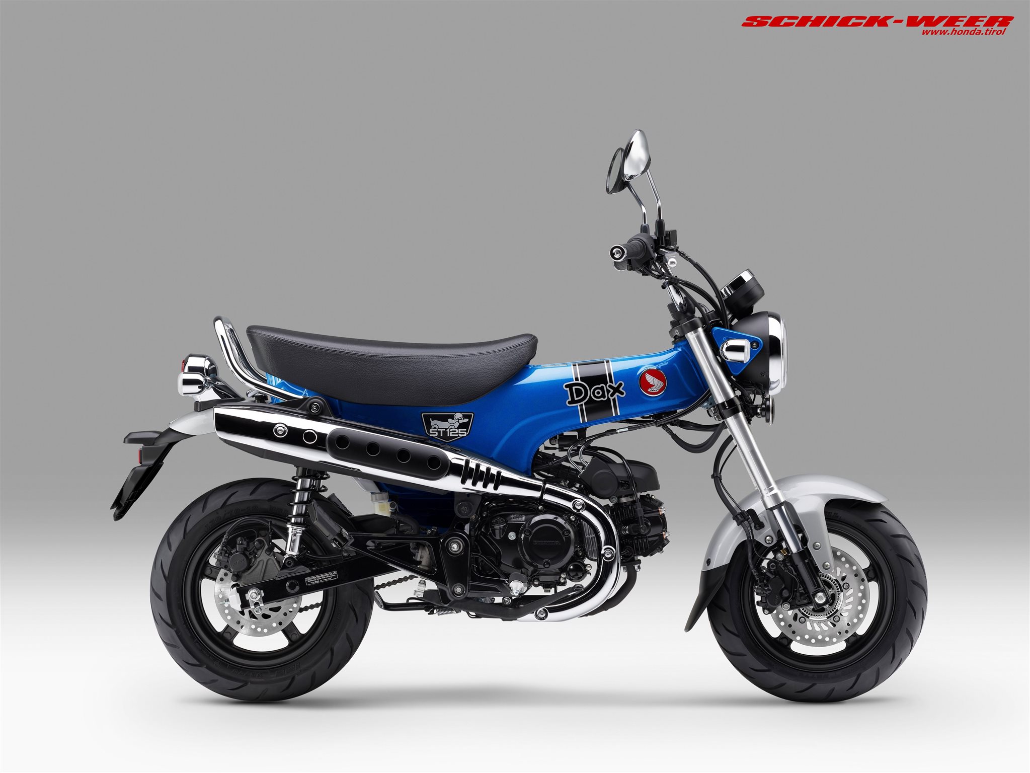 Die Honda Dax begeistert als 125er Leichtkraftrad im Pocketformat mit Originalität und Fahrspaß. Sie verfügt über einen Rahmen aus gepresstem Stahl, eine 31 mm USD-Gabel, 12-Zoll Räder und einen luftgekühlten SOHC-Zweiventil-Einzylindermotor mit Vierganggetriebe und automatischer Fliehkraftkupplung. Volle LED-Beleuchtung, ein kompaktes LCD-Display sowie eine Doppelsitzbank vervollständigen die Ausstattung. Für den Jahrgang 2026 erfüllt die Dax die Abgasnorm Euro 5+. Die charmante Ausstrahlung des frechen Flitzers soll auch 2026 überall in Europa Freunde finden und Liebhaber verzaubern.