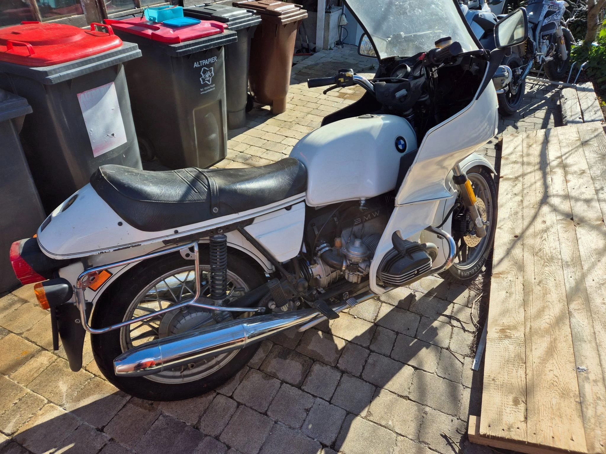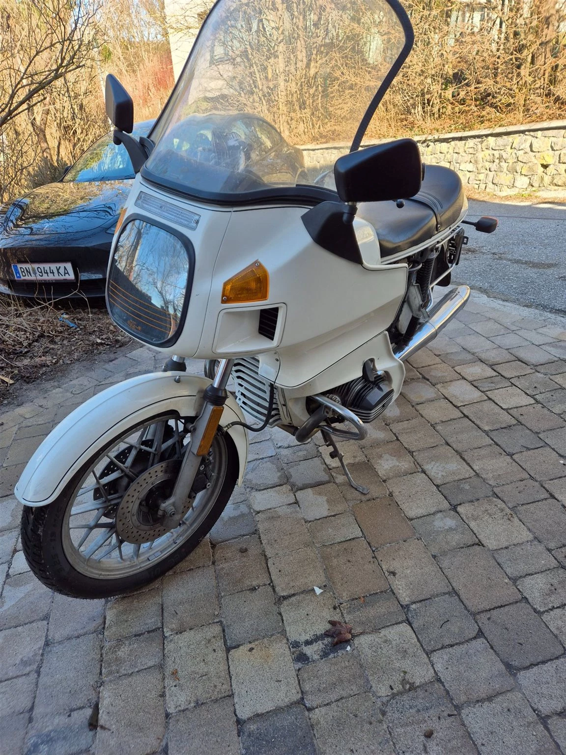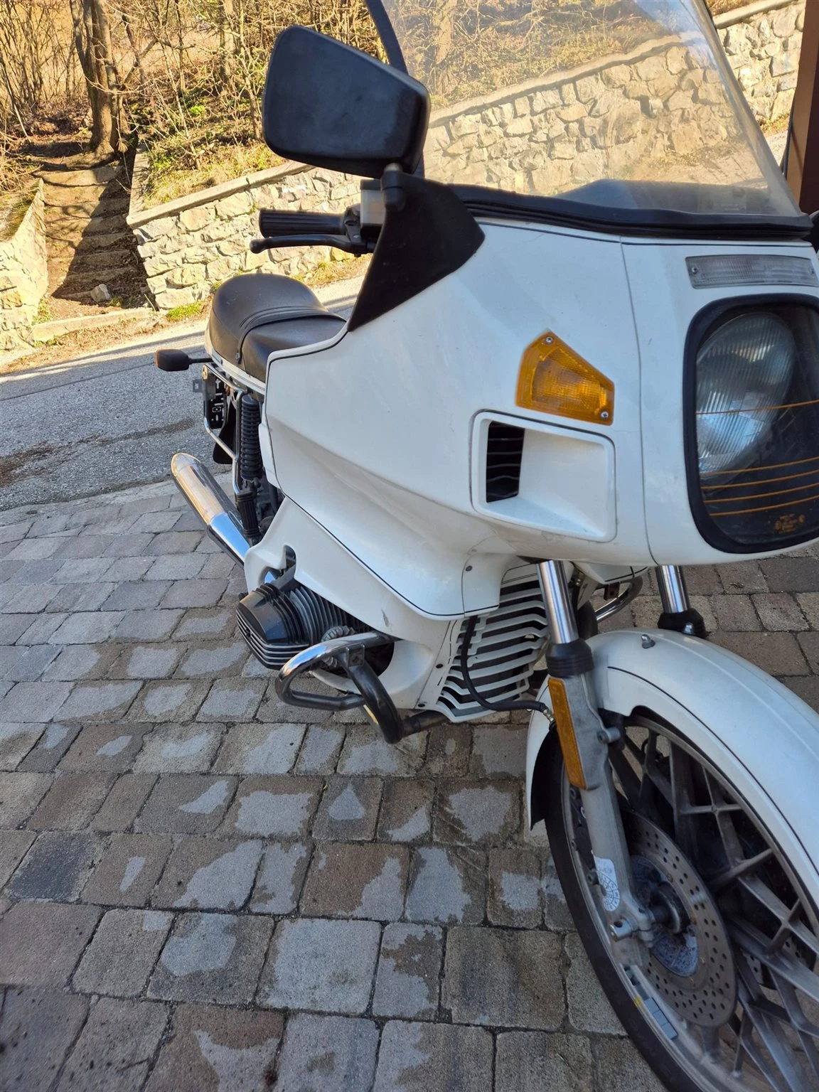 Gepflegte R100 RS weisse Maus, mit Patina. Noch originalem Innenministerium Aufkleber am Heckkotflügel.